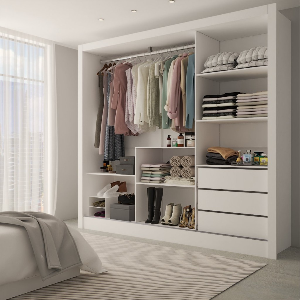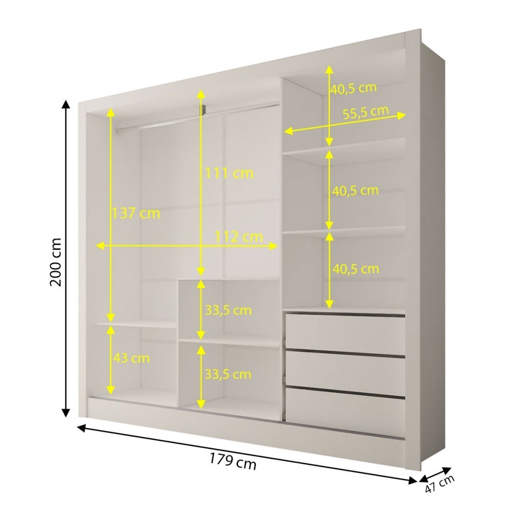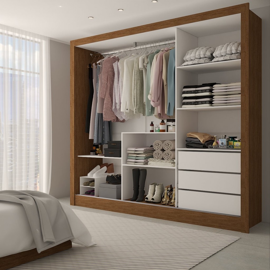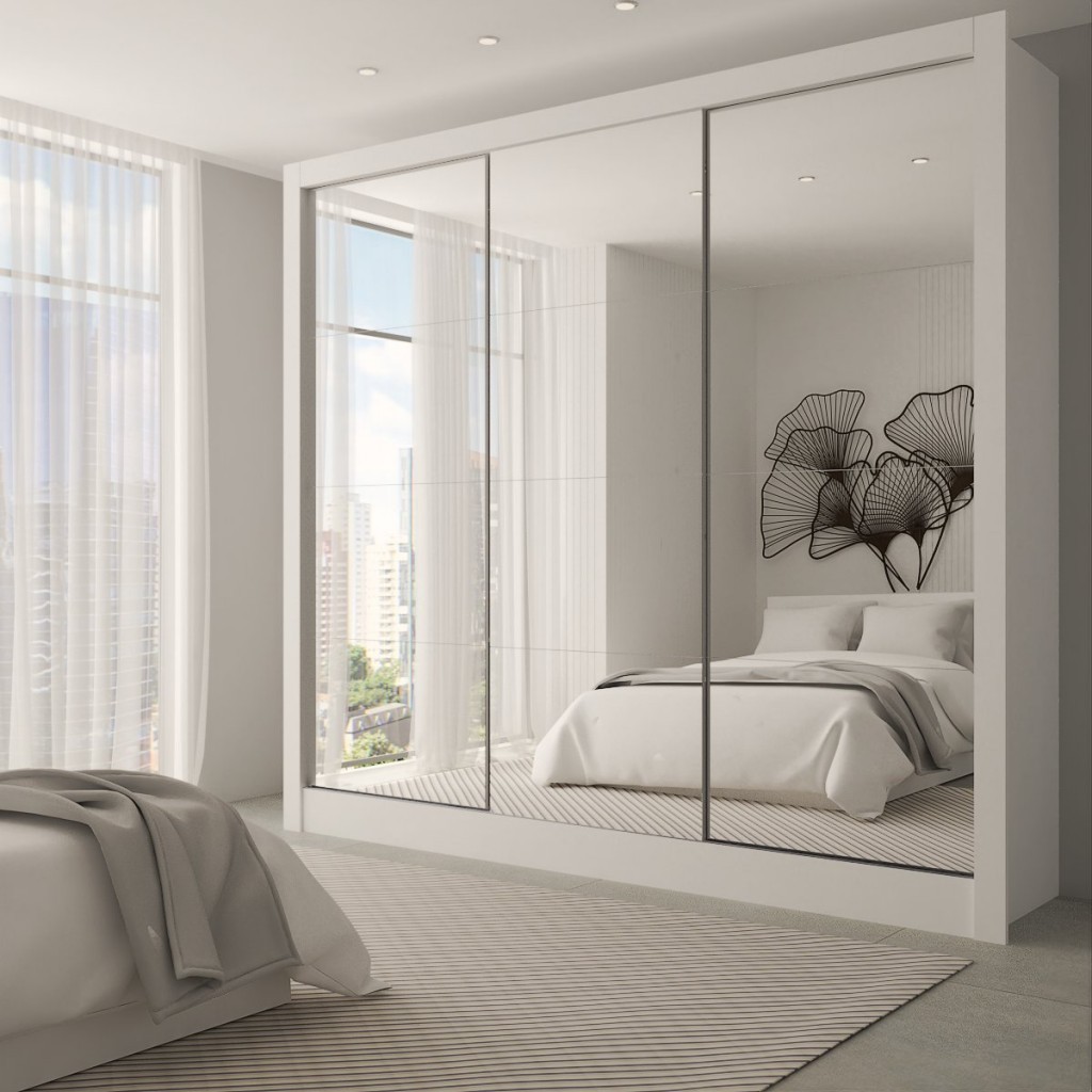 Guarda-Roupa Casal Giulia 3 Portas de Correr 3 Gavetas com Espelho