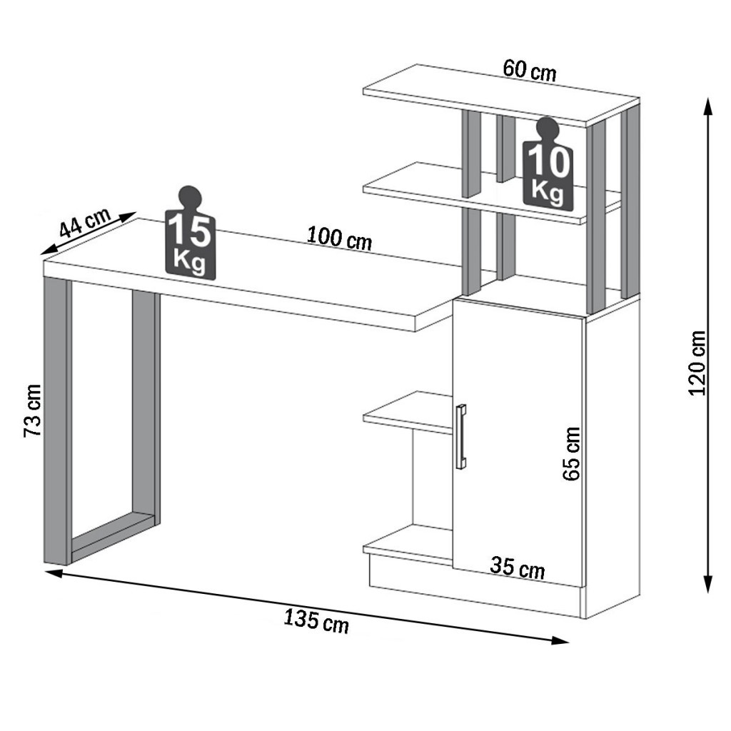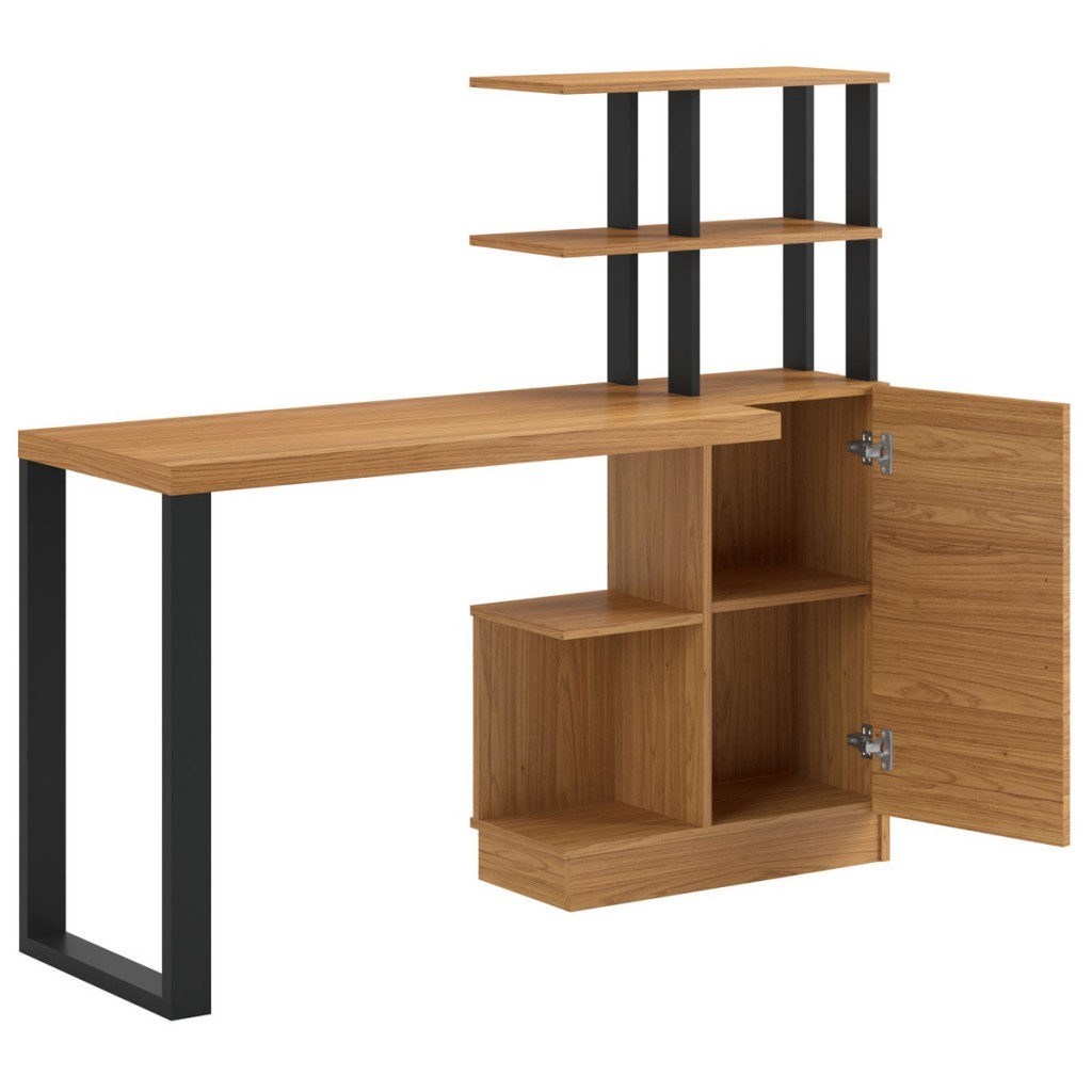 Mesa Escrivaninha Industrial 1 Porta 100% Mdf Freijó/Preto Fosco F17 - Pradel