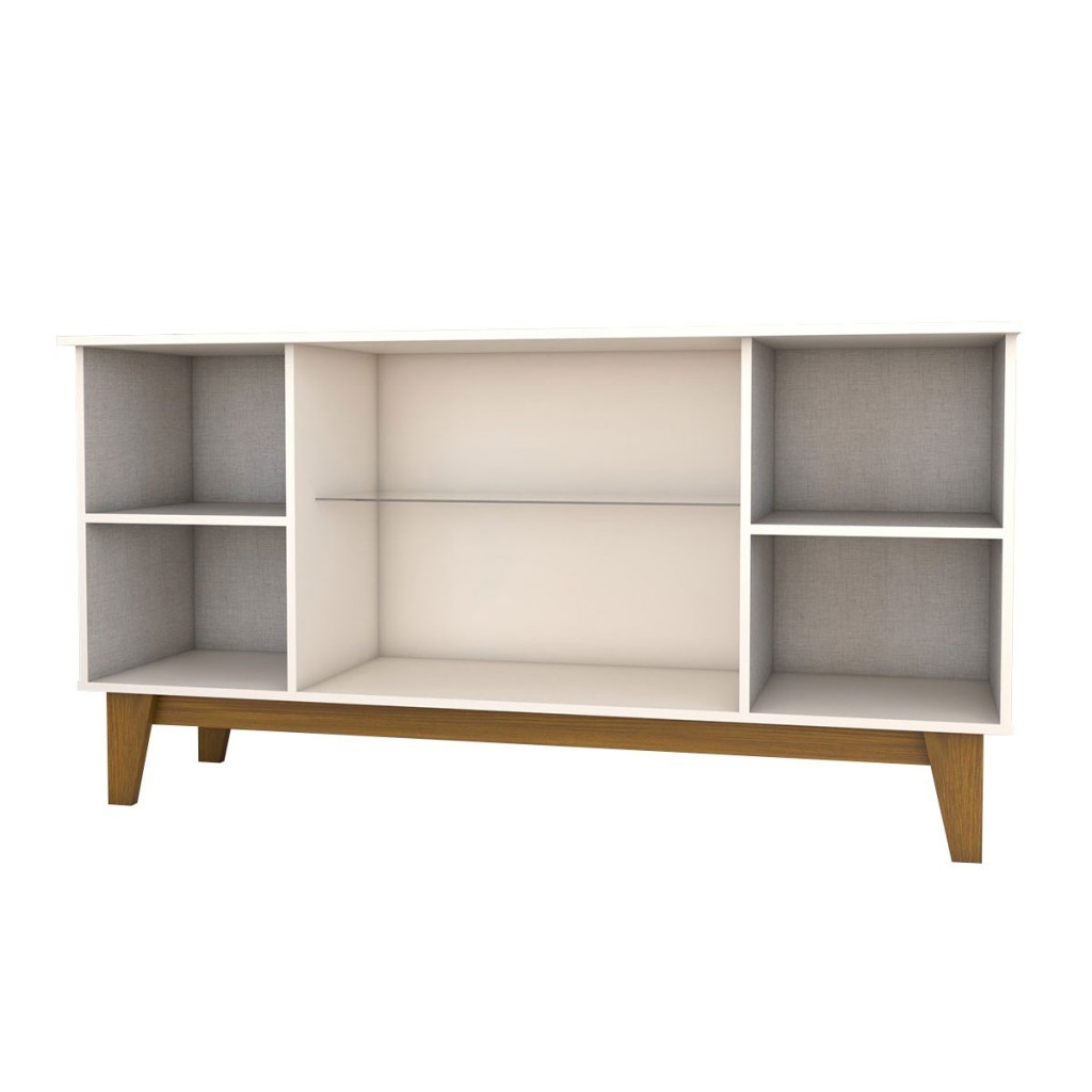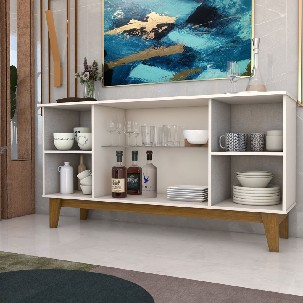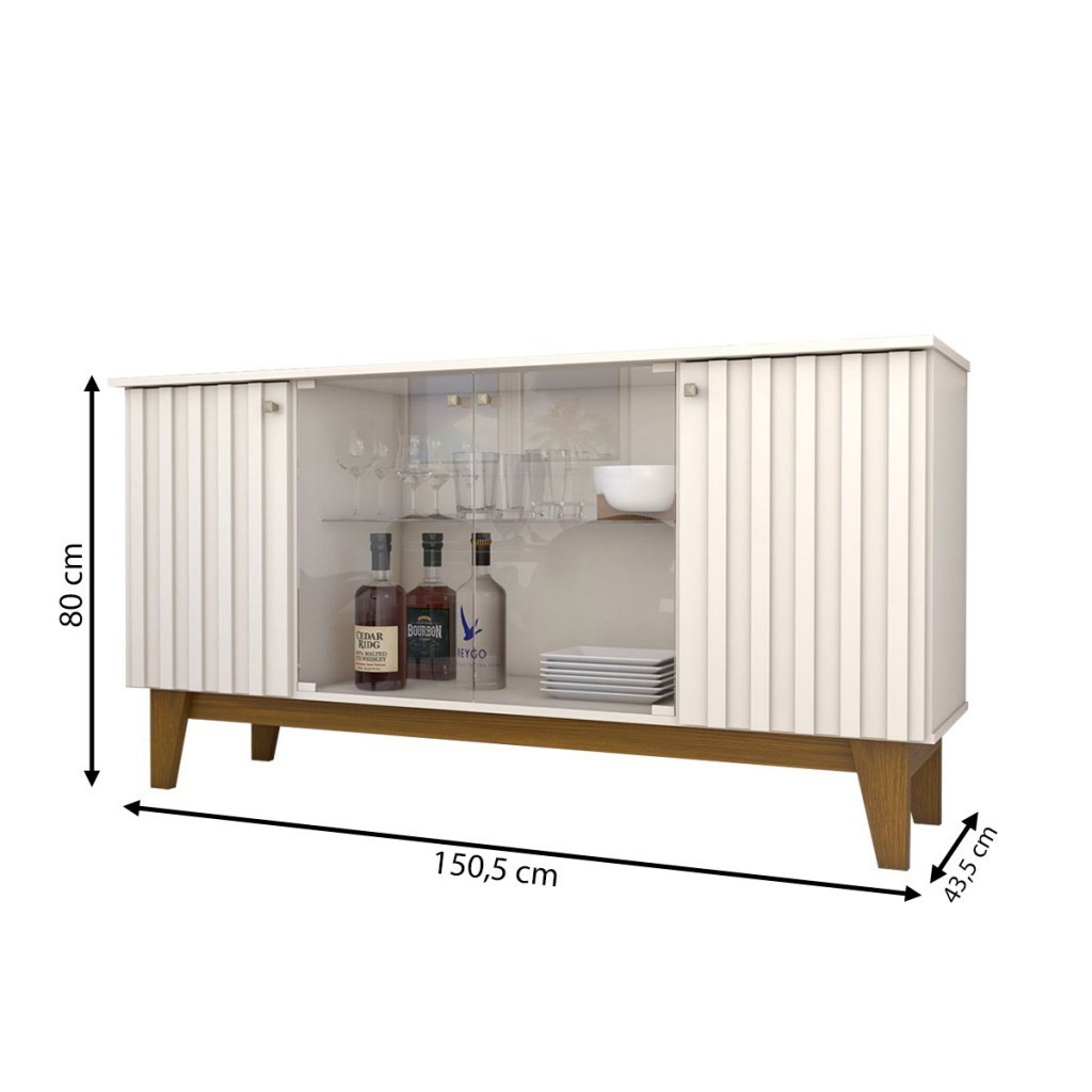 Balcão Buffet Bali 4 Portas 3 Prateleiras com Vidro Ripado Off White/Nature - Panorama Móveis