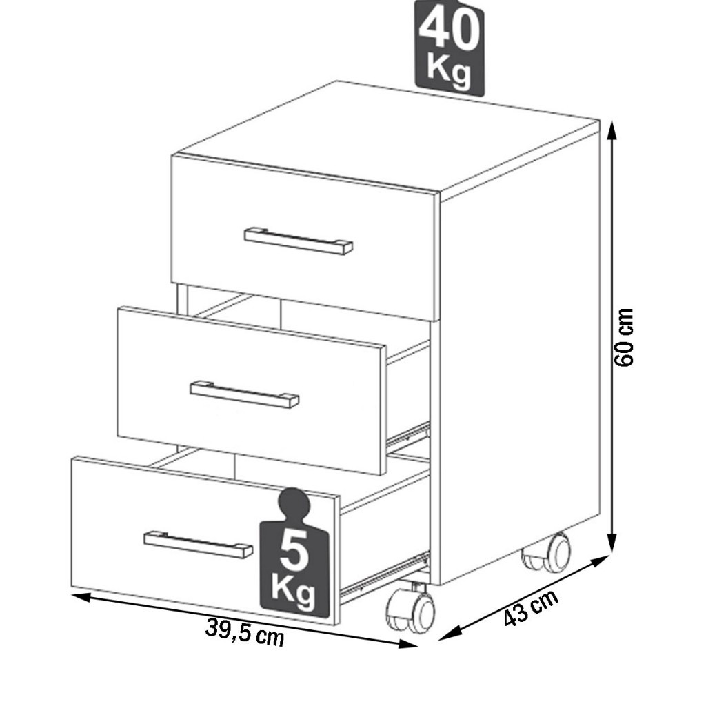 Gaveteiro com Rodízios 3 Gavetas 100% Mdf Freijó F16 - Pradel