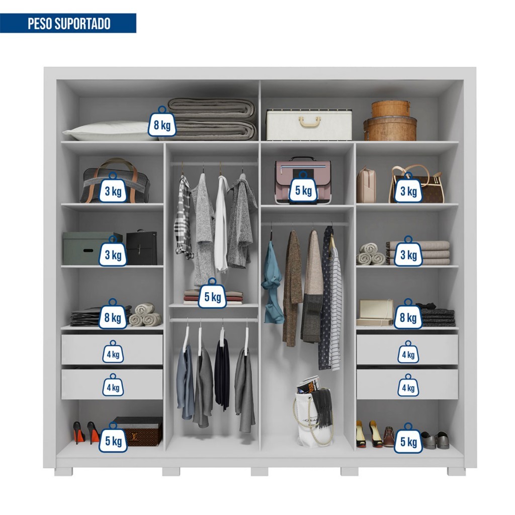 Guarda-Roupa Casal Castellana 2 Portas 4 Gavetas com Espelho - Pnr Móveis
