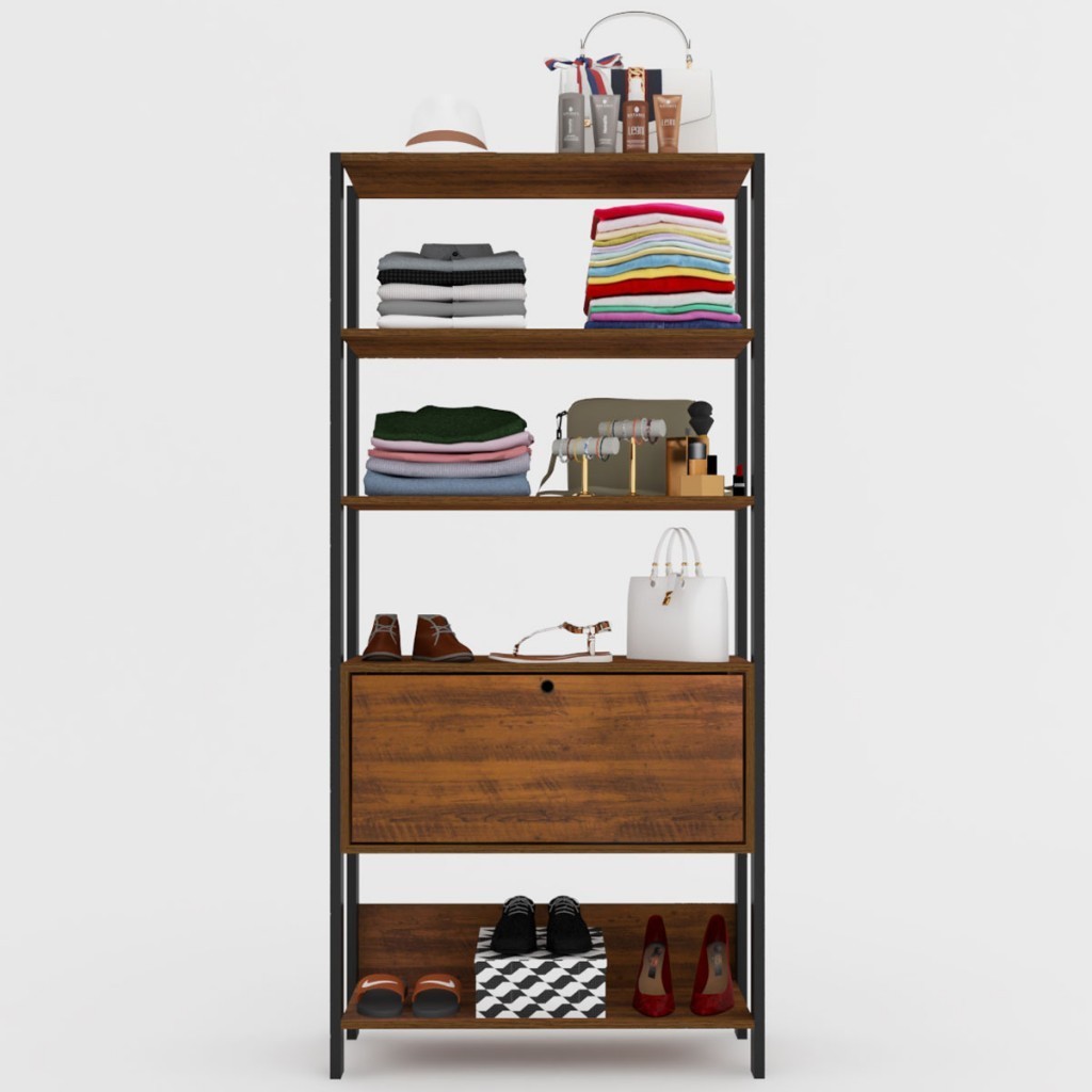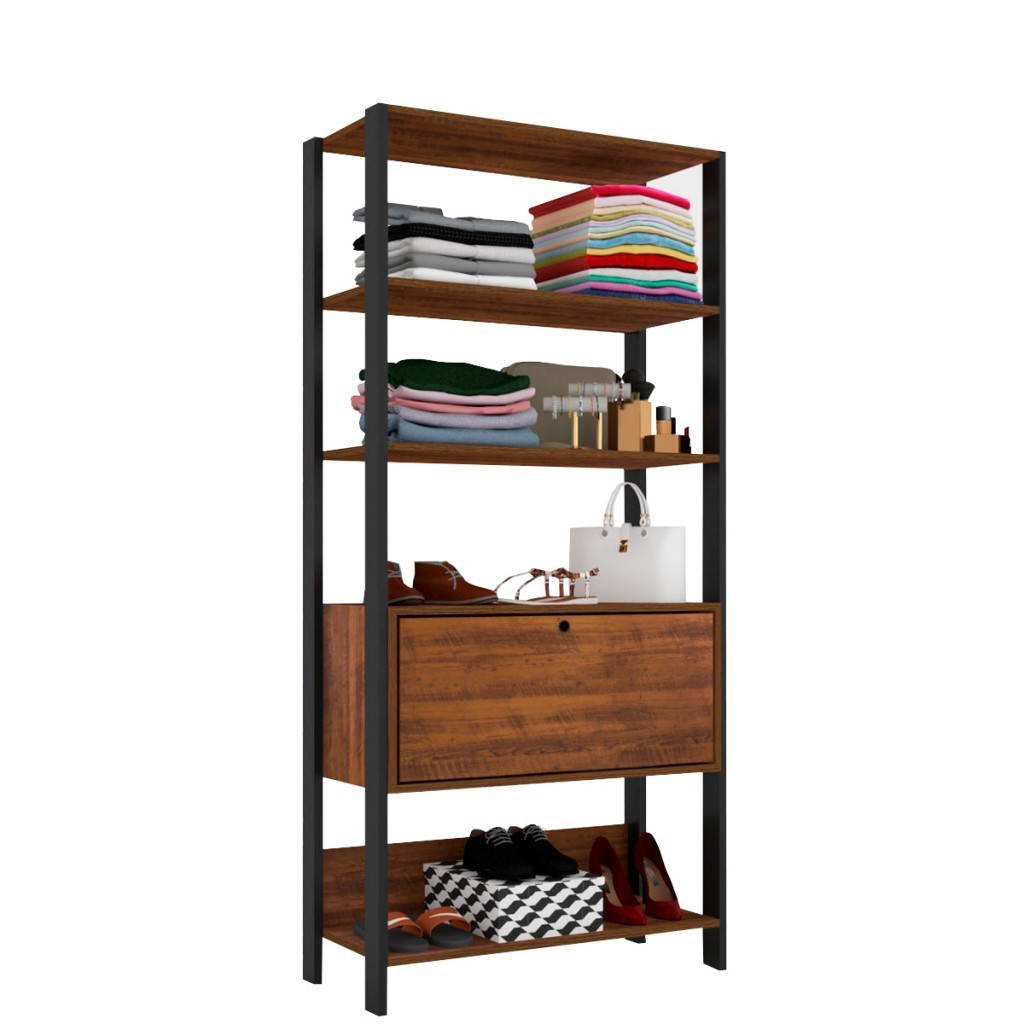 Closet Eloá 1 Porta 3 Prateleiras Pinho/Preto - Pnr Móveis