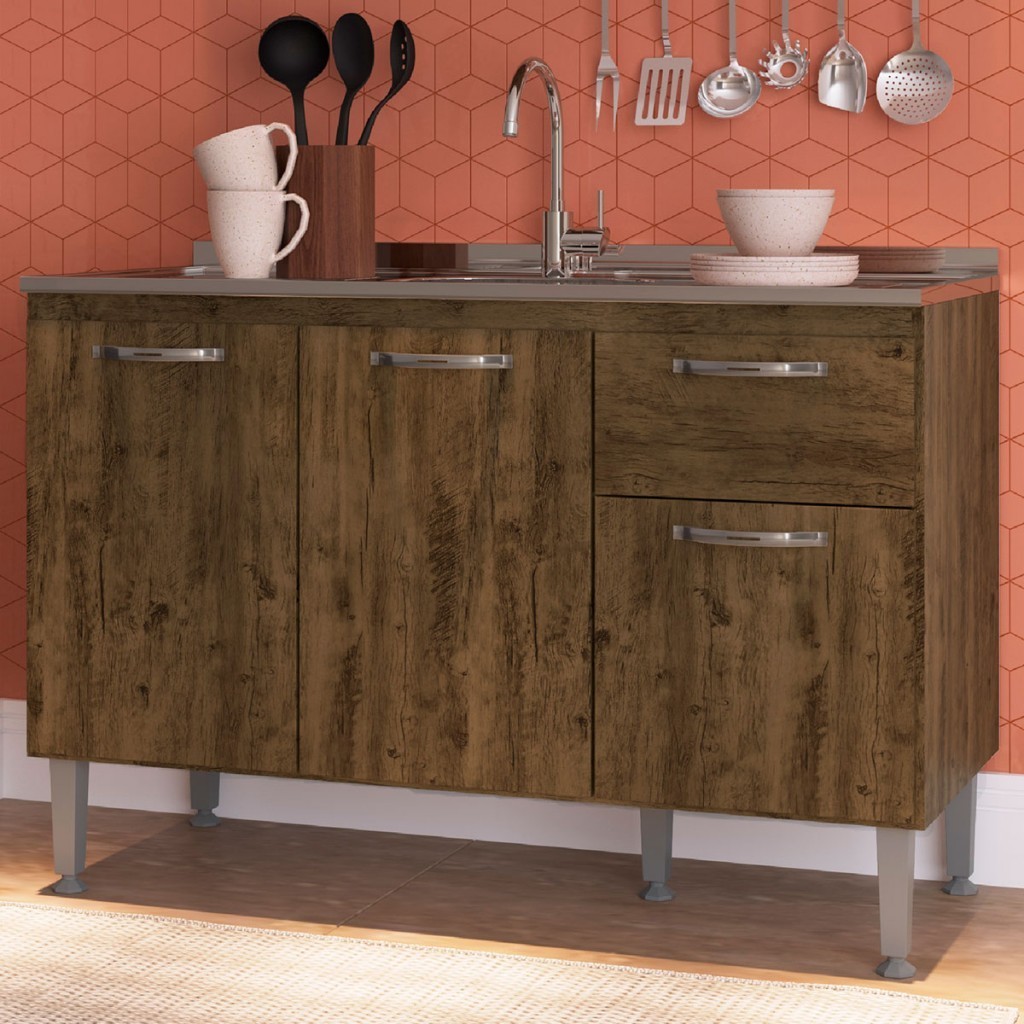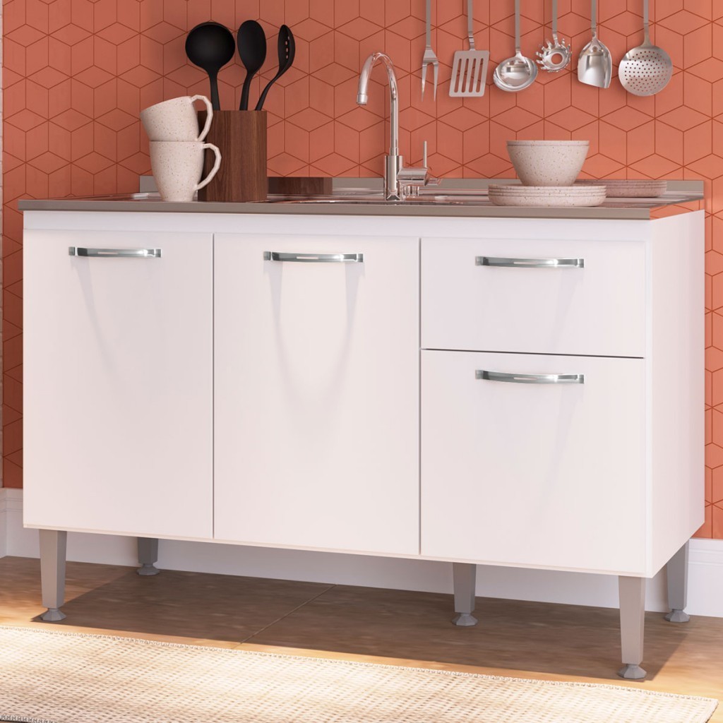 Balcão de Cozinha para Pia 3 Portas 1 Gaveta