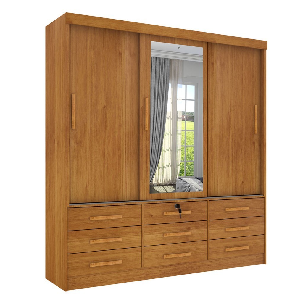 Guarda-Roupa Casal Chicago 3 Portas 9 Gavetas com Espelho Cinamomo - Tcil Móveis