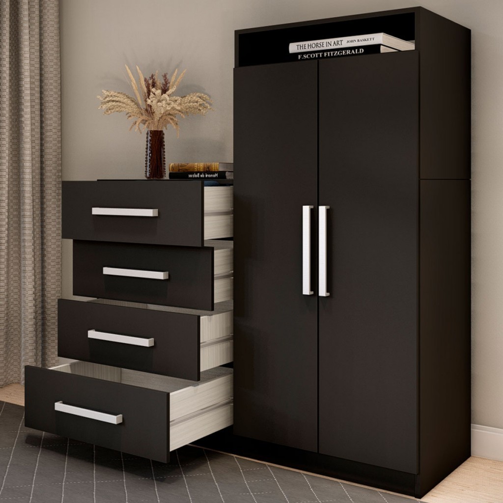 Cômoda Paris 2 Portas 4 Gavetas Preto Fosco - Panorama Móveis