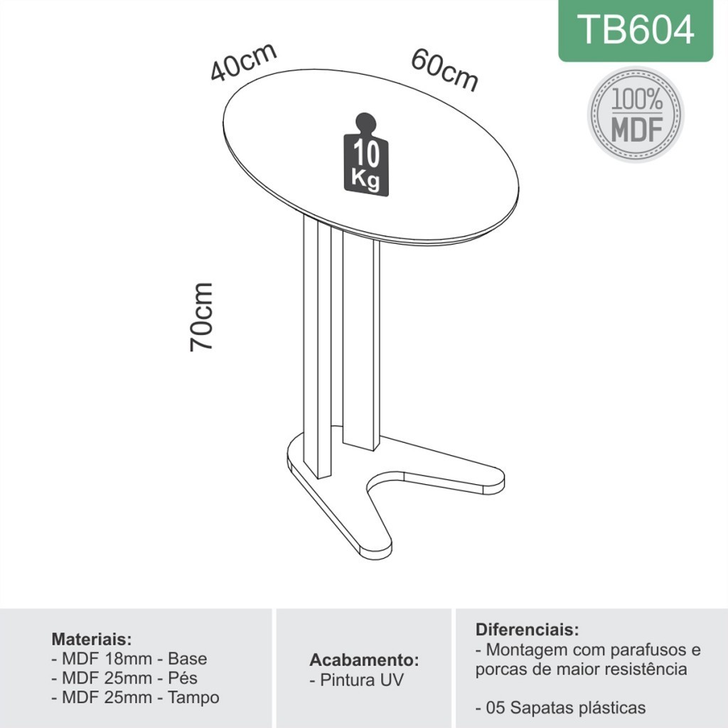 Mesa de Canto 60cm 100% Mdf Freijo - Dalla Costa