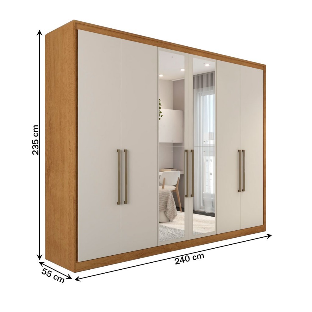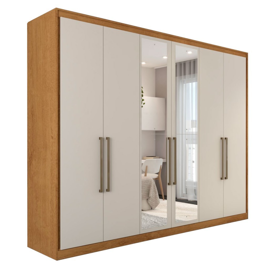 Guarda-Roupa Casal Guarujá 6 Portas 6 Gavetas com Espelho 100% Mdf Peroba/Off White - Panorama Móveis