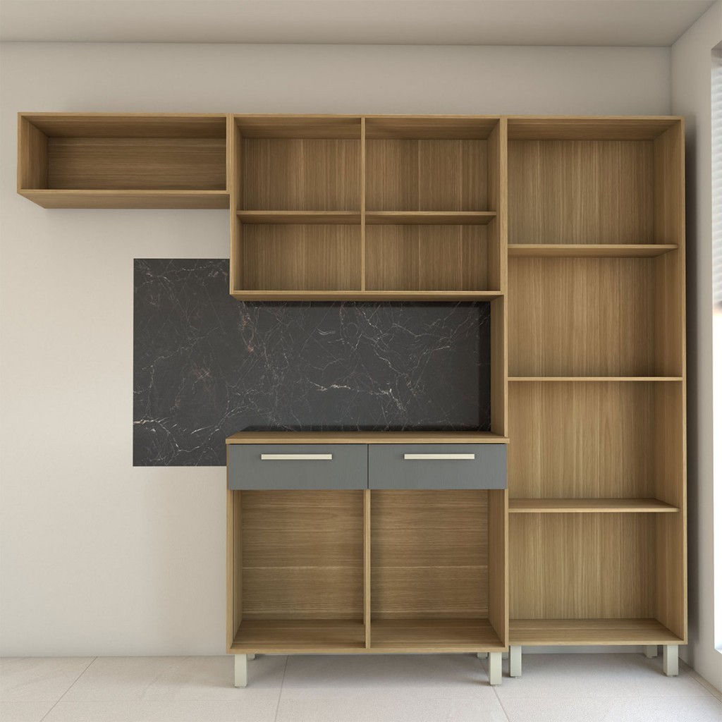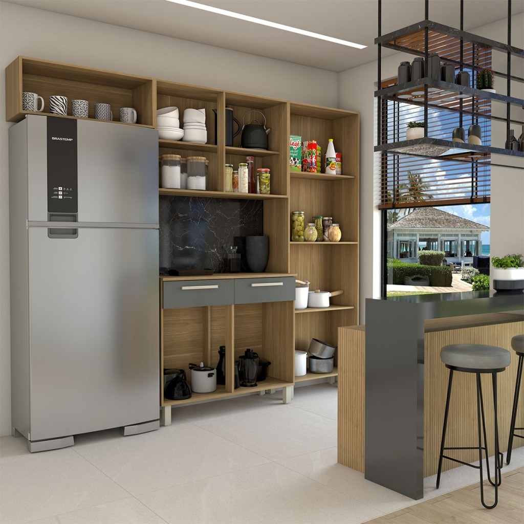 Armário de Cozinha com Balcão Império 10 Portas 2 Gavetas com Vidro Freijó/Gris - Panorama Móveis