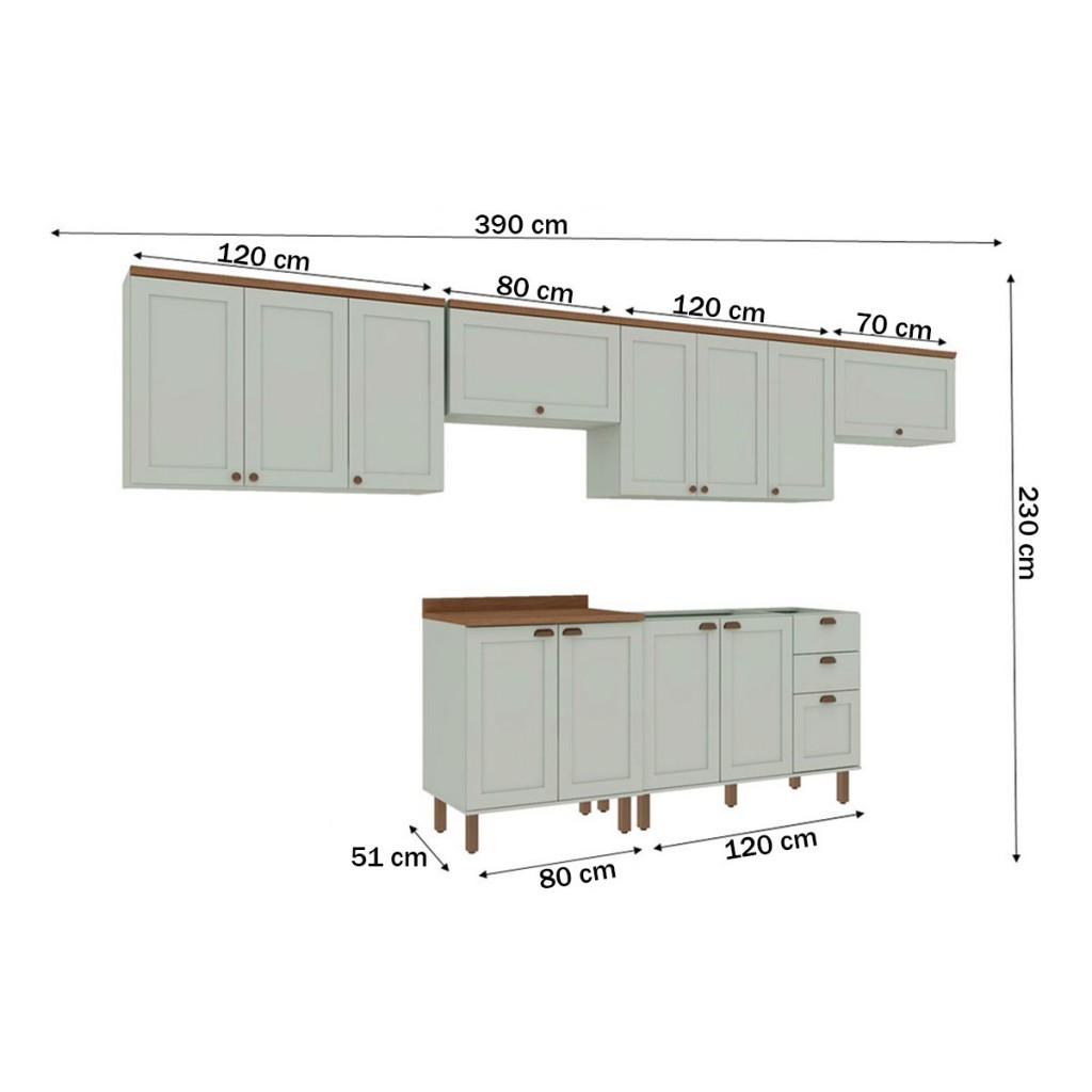 Cozinha Completa Iluminata 12 Portas 3 Gavetas 100% MDF - GenialFlex
