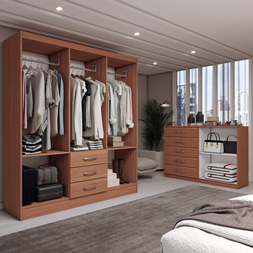 Guarda-Roupa Casal Carter 6 Portas 3 Gavetas com Cômoda 2 Portas 5 Gavetas