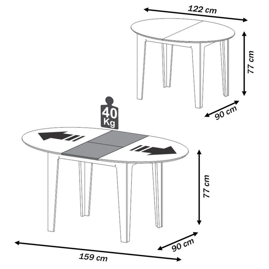 Mesa de Madeira Extensível Freijó/Preto Fosco - Dalla Costa