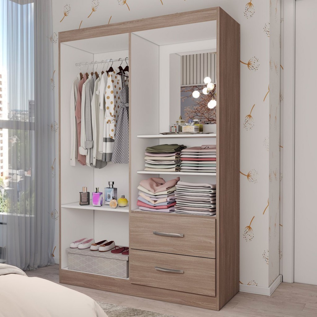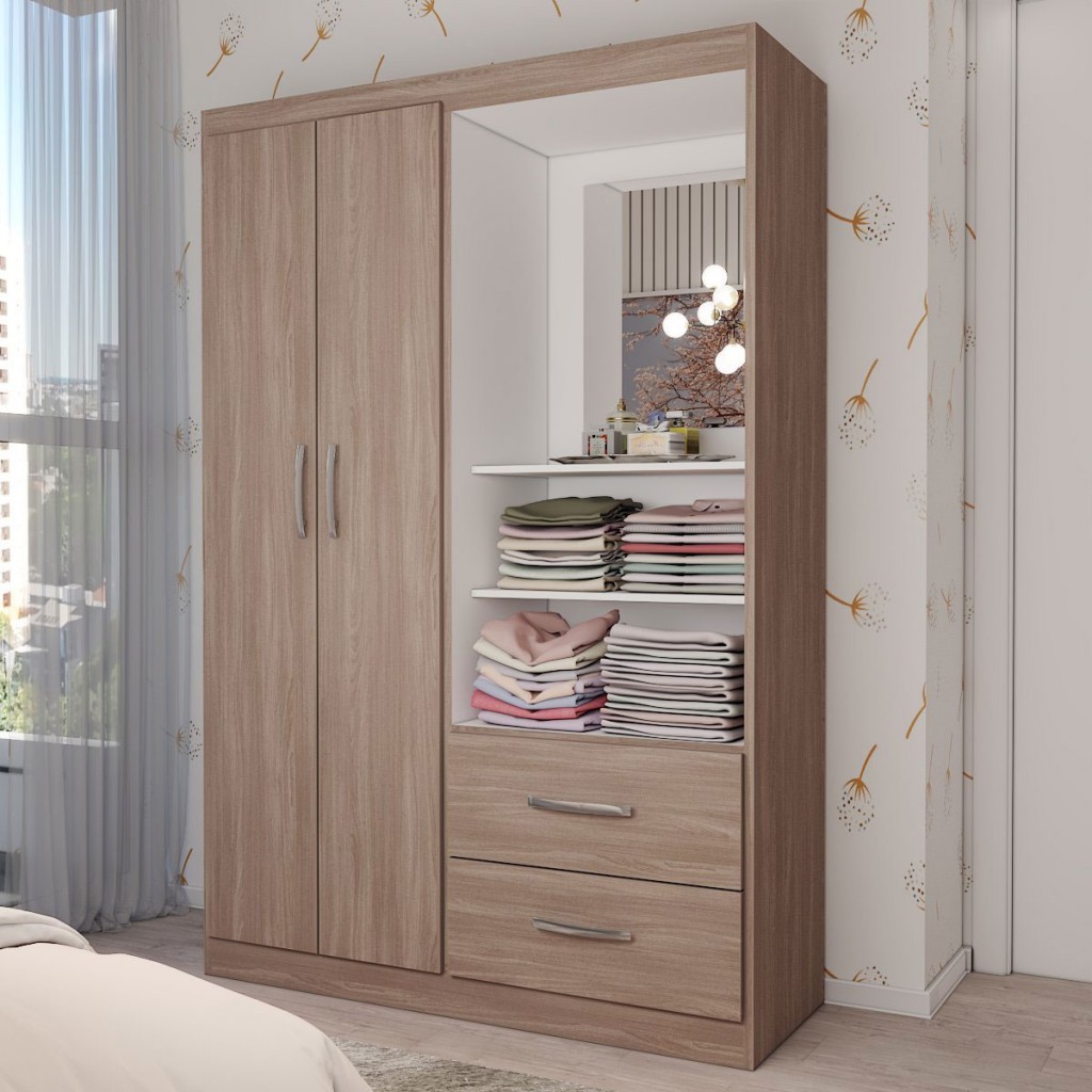 Guarda-Roupa Infantil Gabe 2 Portas 2 Gavetas com Espelho