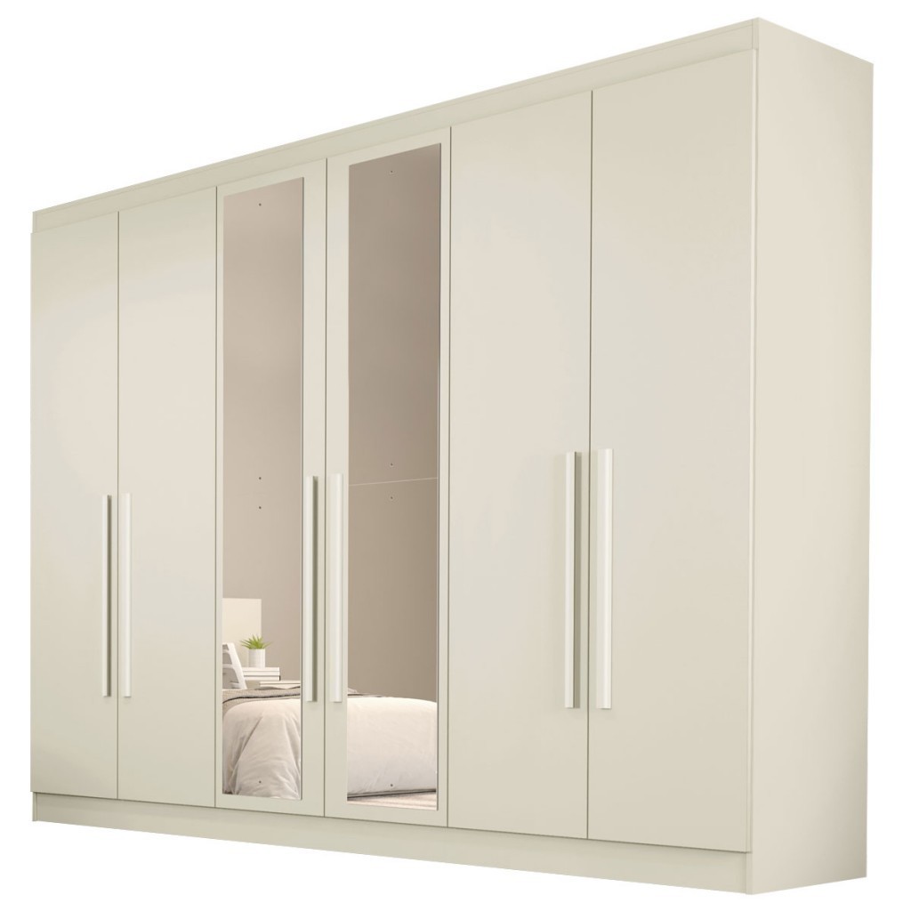 Guarda-Roupa Casal Oslo 6 Portas 4 Gavetas 100% Mdf com Espelho Off White - Mademarques
