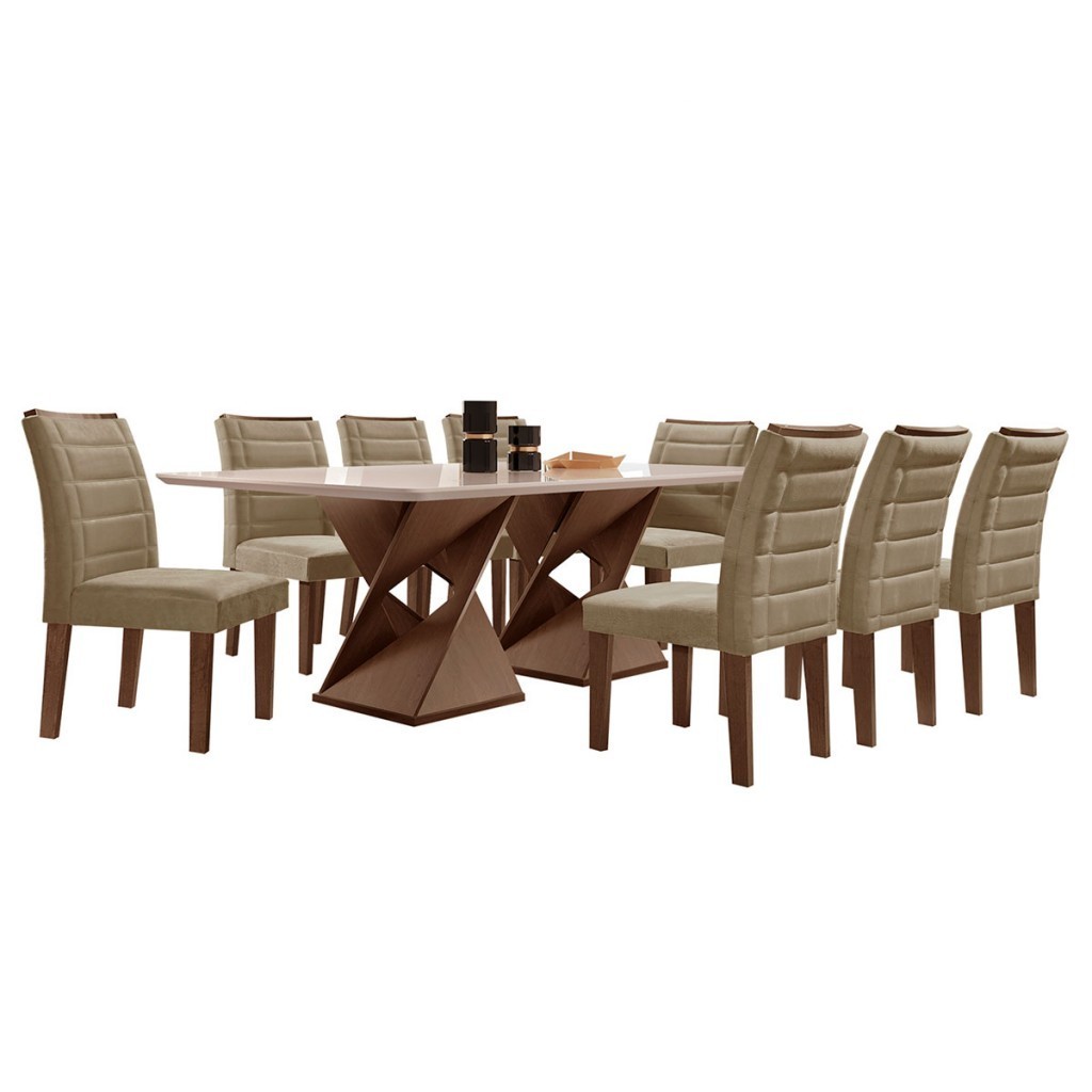 Mesa de Jantar 8 Lugares Genova com Vidro Chocolate/Off White/Marrom Claro - Cel Móveis