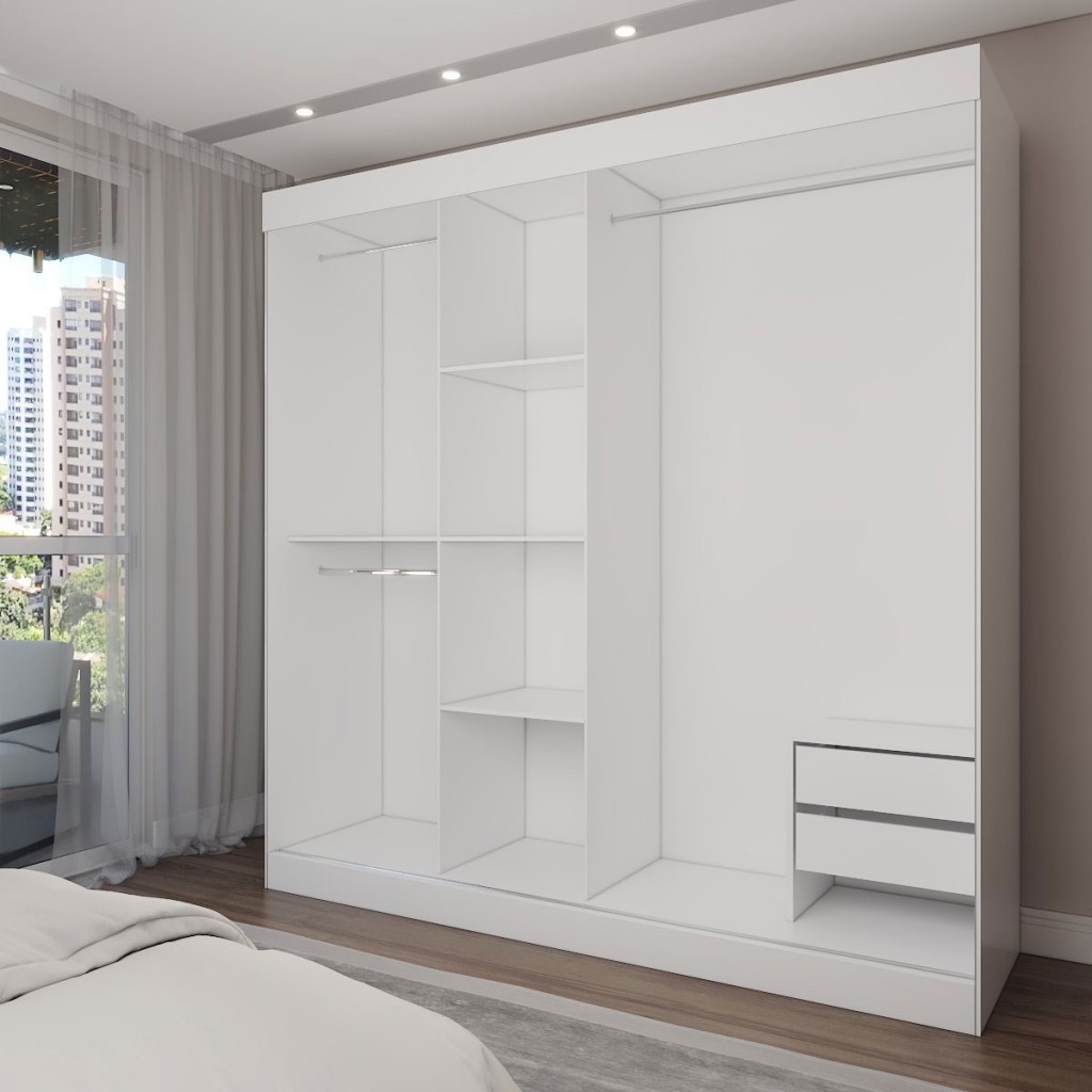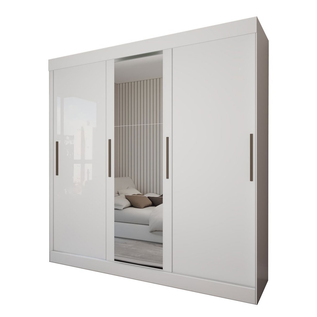 Guarda-Roupa Casal Katy 3 Portas 2 Gavetas com Espelho Branco - Pnr Móveis