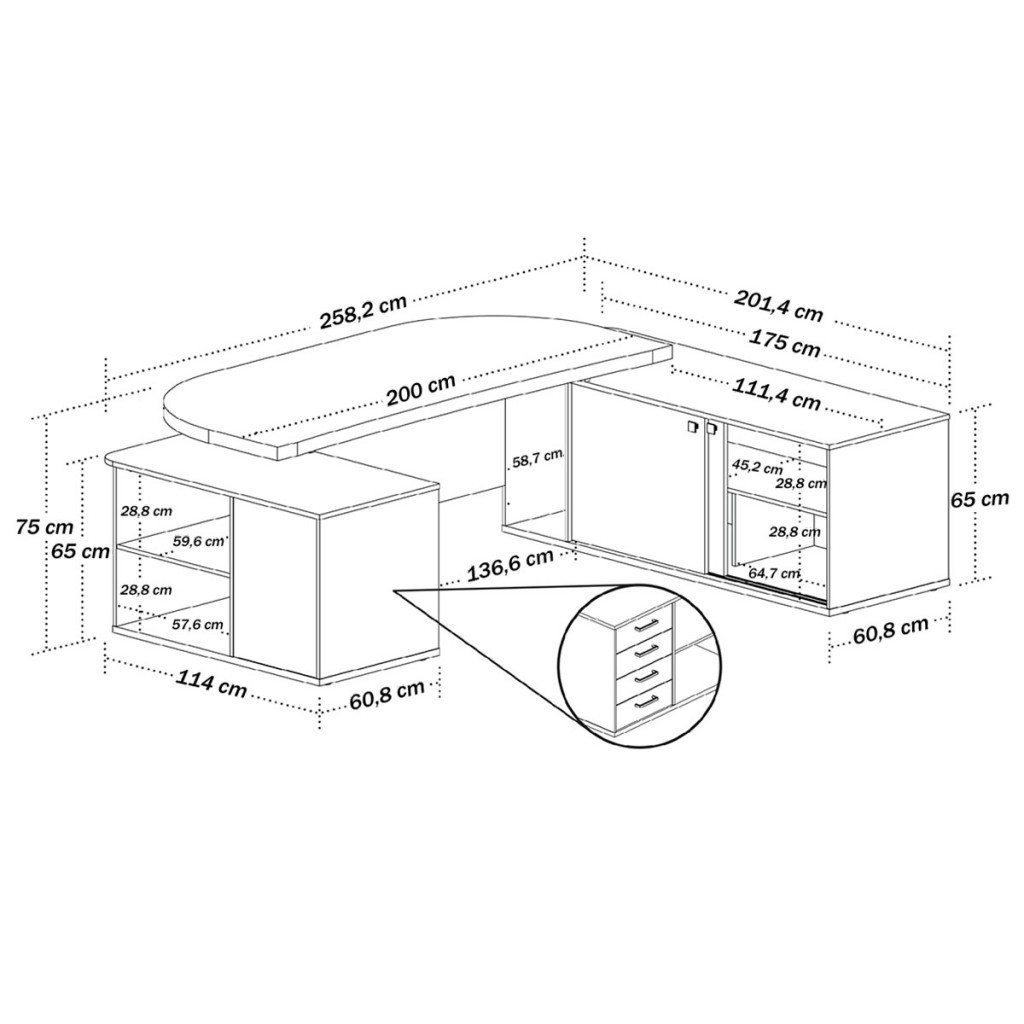 Mesa para Escritório Presidente Tamburado 4 Gavetas 2 Portas Charuto/Preto - Artany Móveis