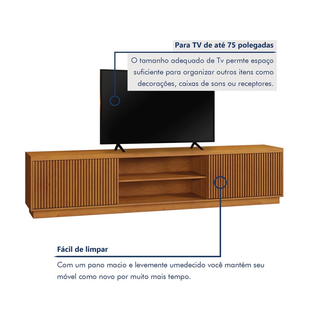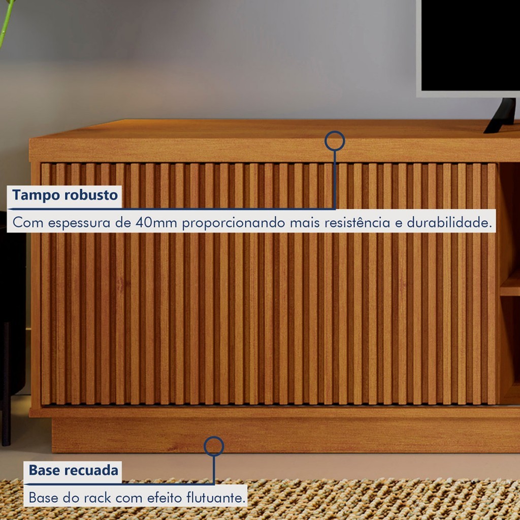 Rack para TV de Até 75 Polegadas Ripado 2 Portas Logan Naturalle - Mavaular