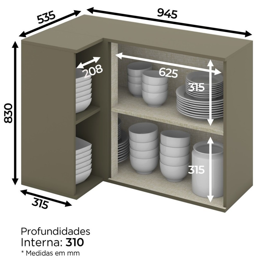 Armário Aéreo Cozinha Canto Reto évelin 1 Porta Duna/Cristal - Henn