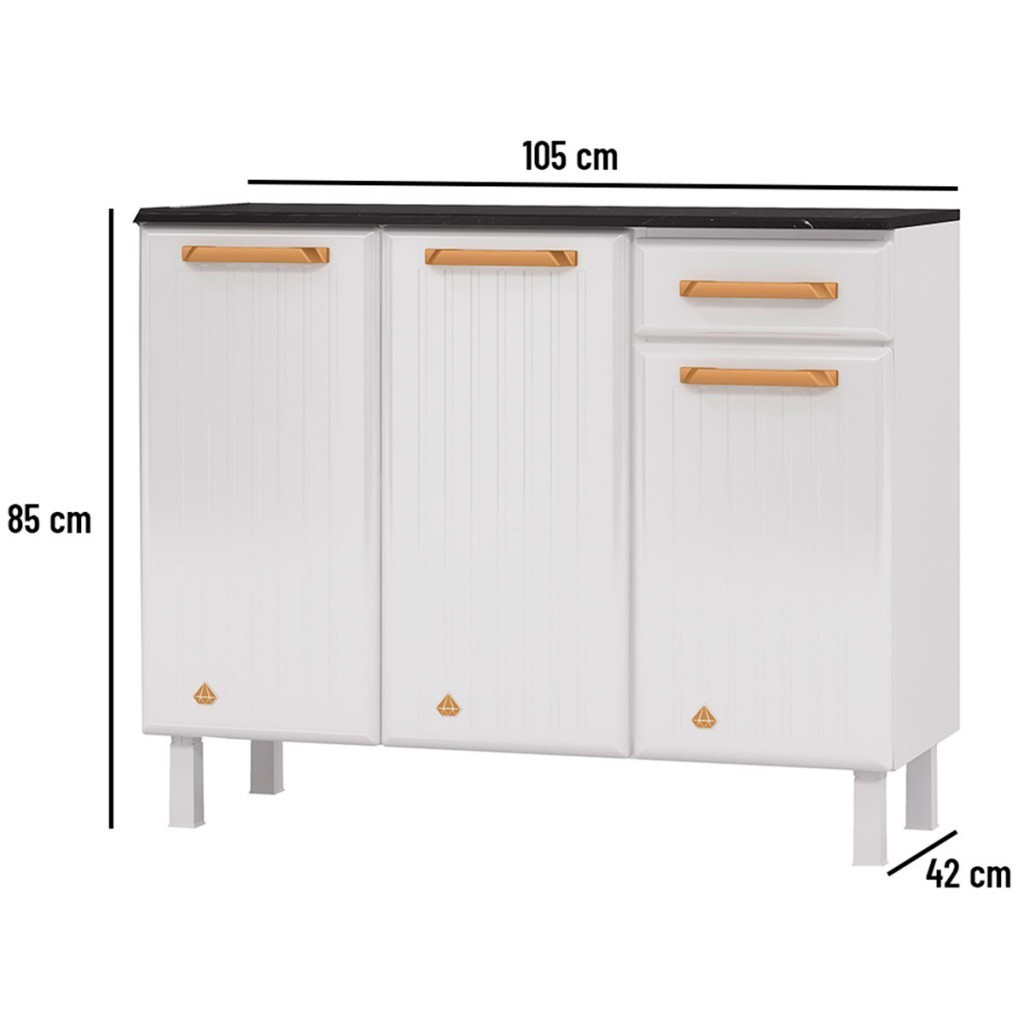 Balcão de Cozinha em Aço Diamante 3 Portas 1 Gaveta 818134