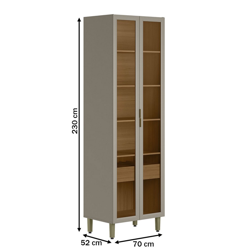 Cristaleira Allure 2 Portas 1 Gaveta com Vidro e Led 100% Mdf Jequitibá/Gris Fosco - Linea Brasil