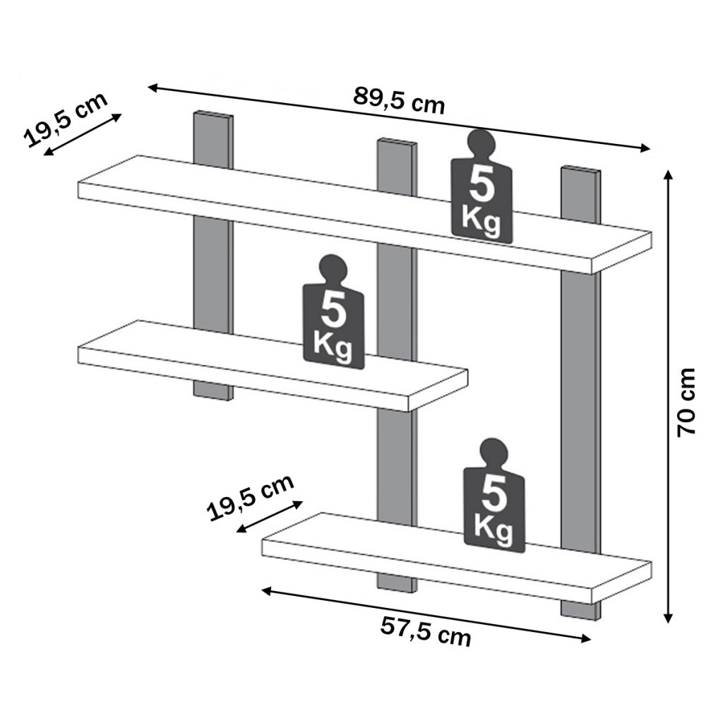 Prateleira Industrial 3 Prateleiras 100% Mdf Freijó/Preto Fosco F35 - Pradel