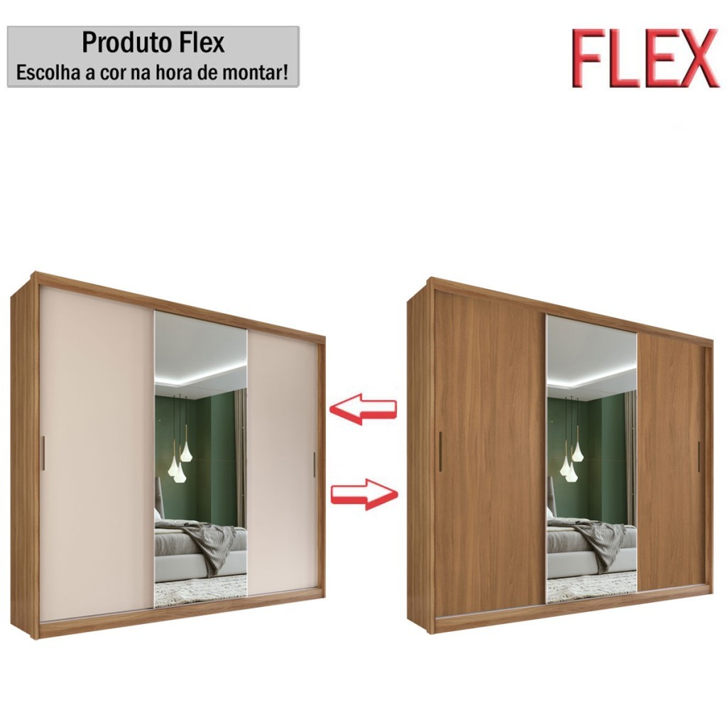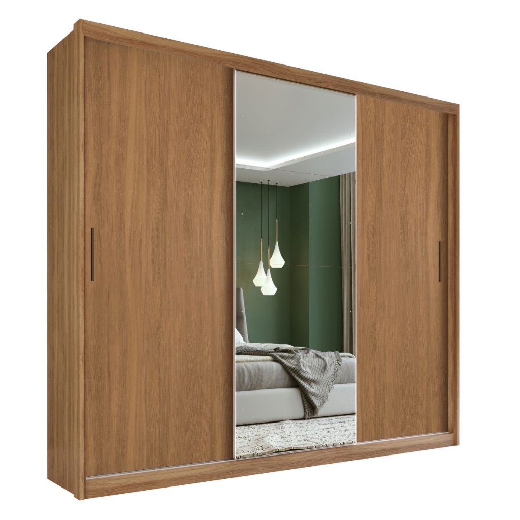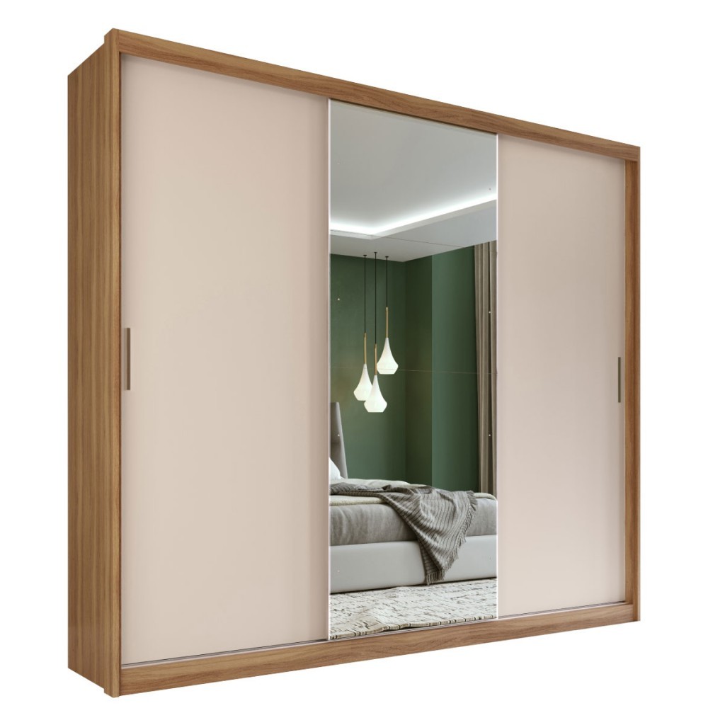 Guarda-Roupa Casal Dalila 3 Portas 4 Gavetas 5 Prateleiras com 1 Porta Espelho 100% MDF Amêndola/Off-White - Demóbile