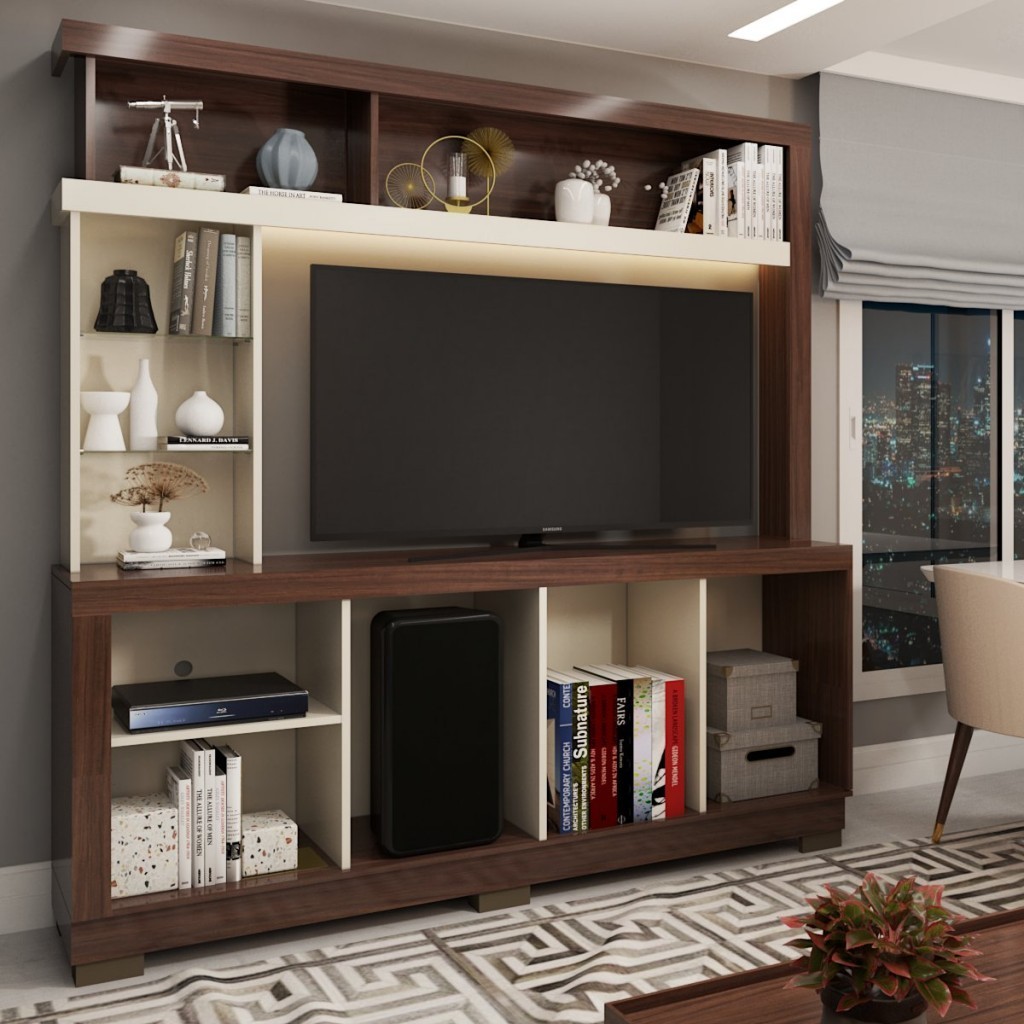 Estante para TV Até 50 Polegadas Malbec 2 Portas Nogueira Real/Off White - Pnr Móveis