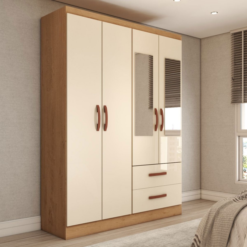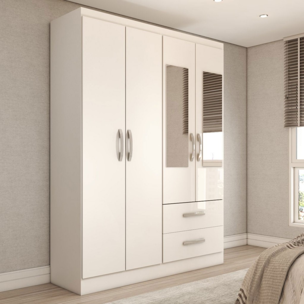 Guarda-Roupa Solteiro Galápagos 4 Portas 2 Gavetas com Espelho