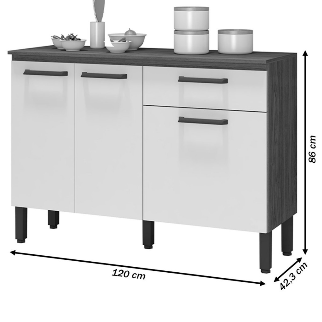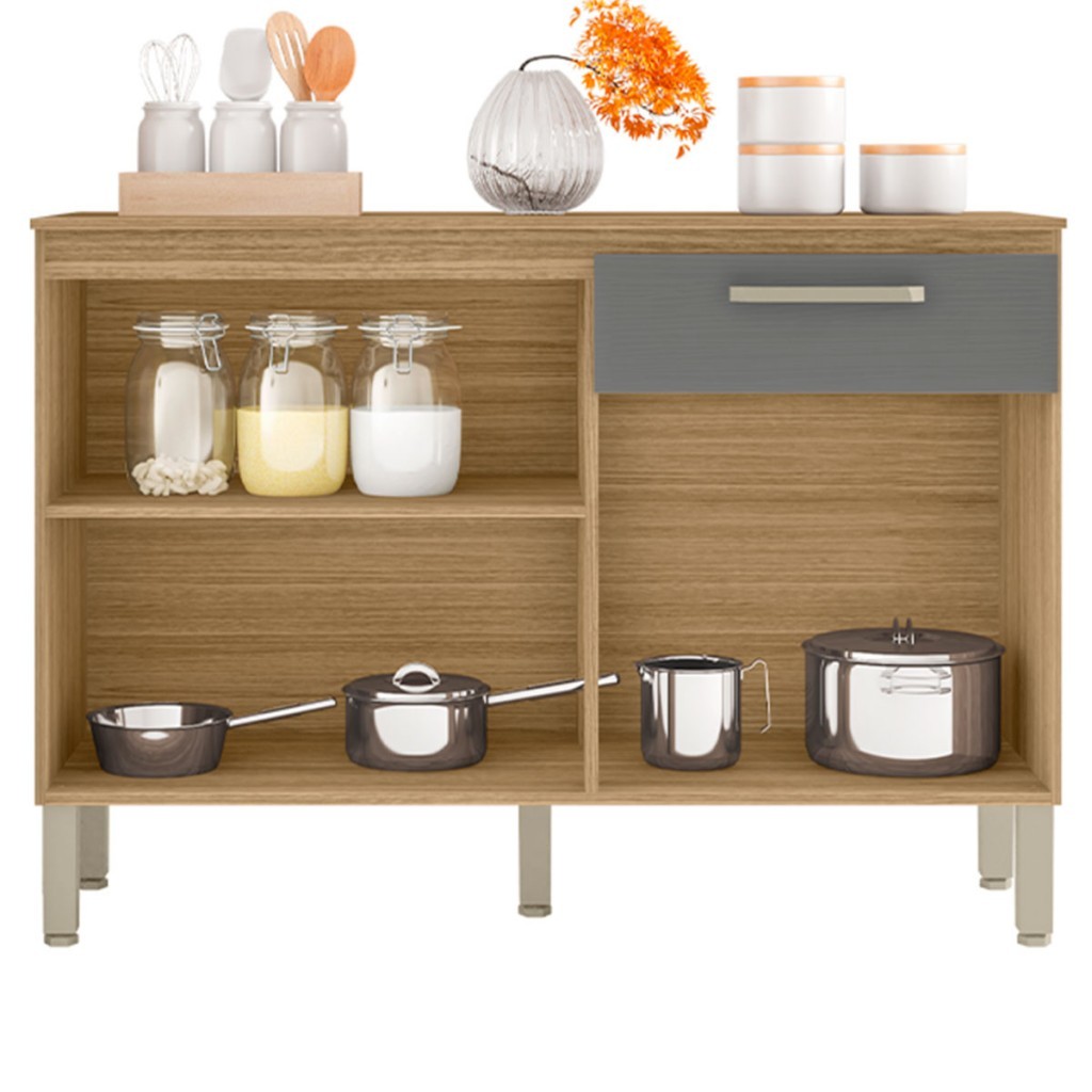 Balcão de Cozinha Boreal 3 Portas 1 Gaveta Freijó/Gris - Pnr Móveis