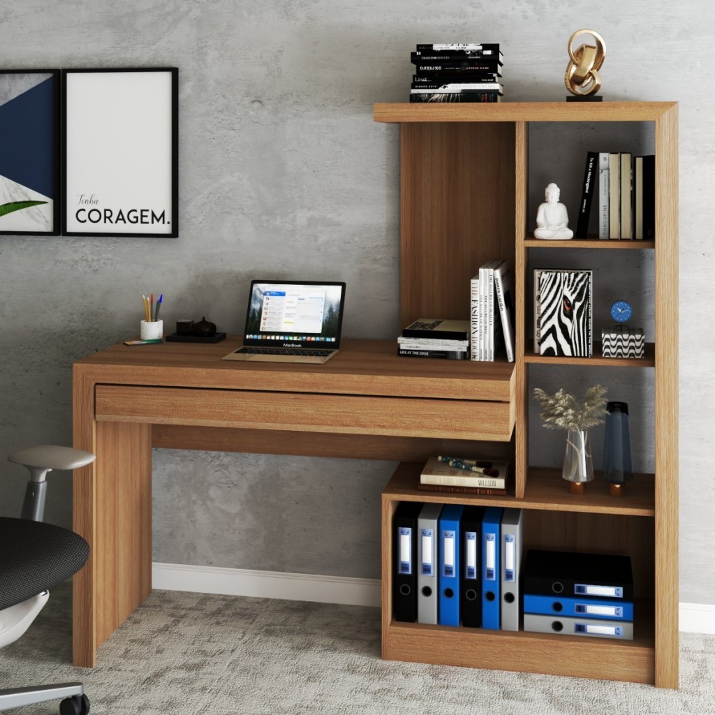 Mesa Escrivaninha 2 Portas 1 Gaveta para Computador Homework Amêndoa - Panorama Móveis