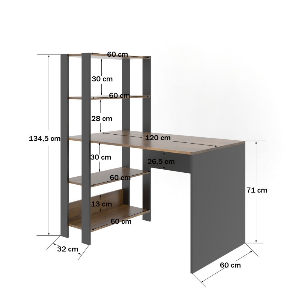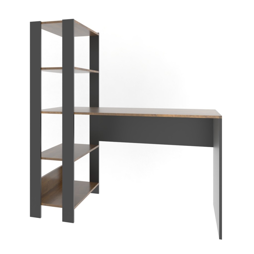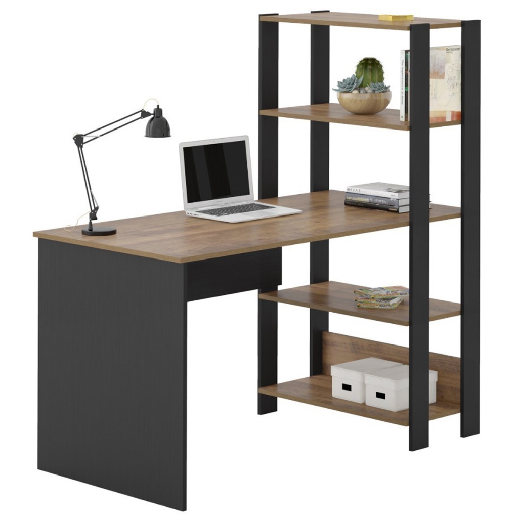 Mesa Escrivaninha Match 3 Prateleiras Pinho/Preto - Pnr Móveis