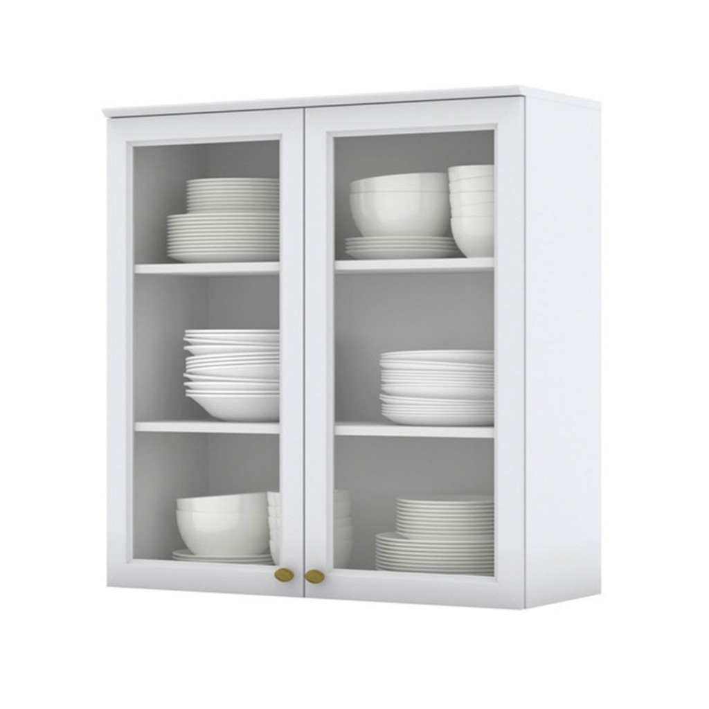 Armário Aéreo Cozinha Americana 2 Portas com Vidro Branco - Henn