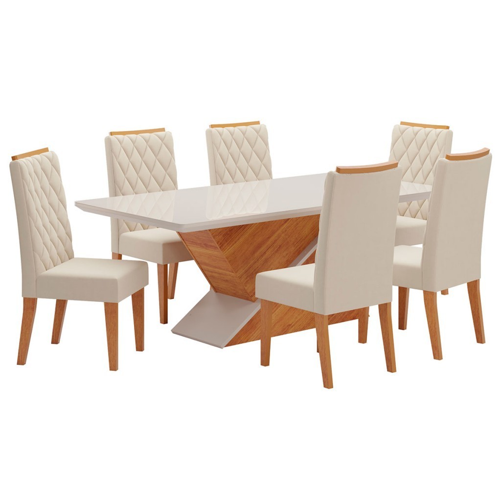 Mesa de Jantar 6 Lugares Mira com Vidro