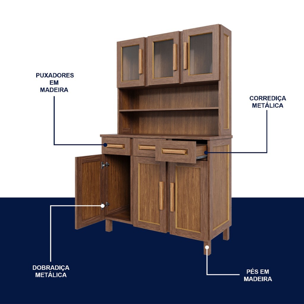 Armário de Cozinha Bahia 6 Portas 3 Gavetas com Vidro Ypê - Rodmóveis