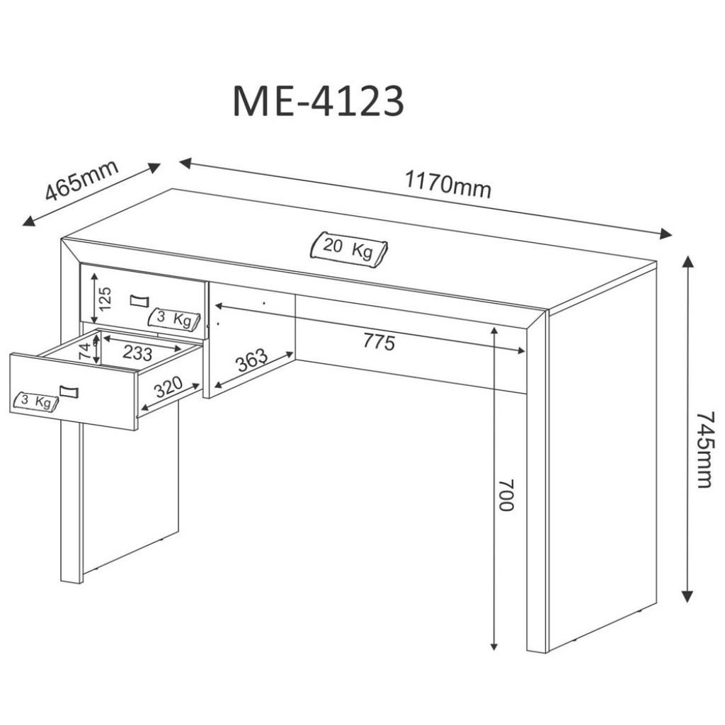 Mesa Escrivaninha 2 Gavetas Me4123 Branco - Tecno Mobili