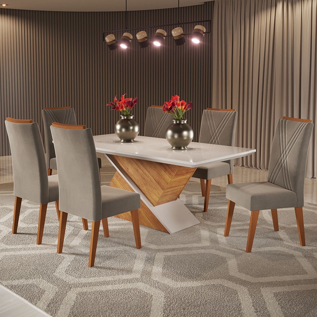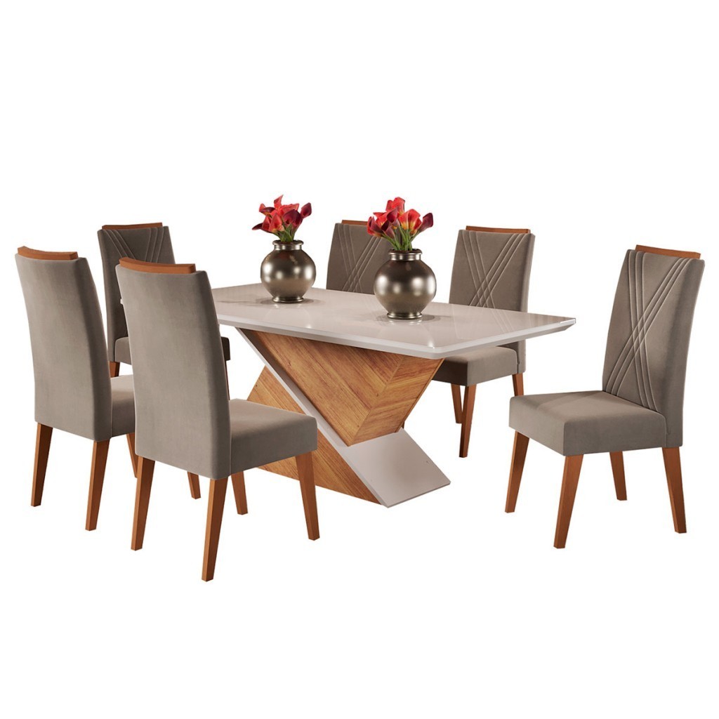 Mesa de Jantar 6 Lugares Stela com Vidro