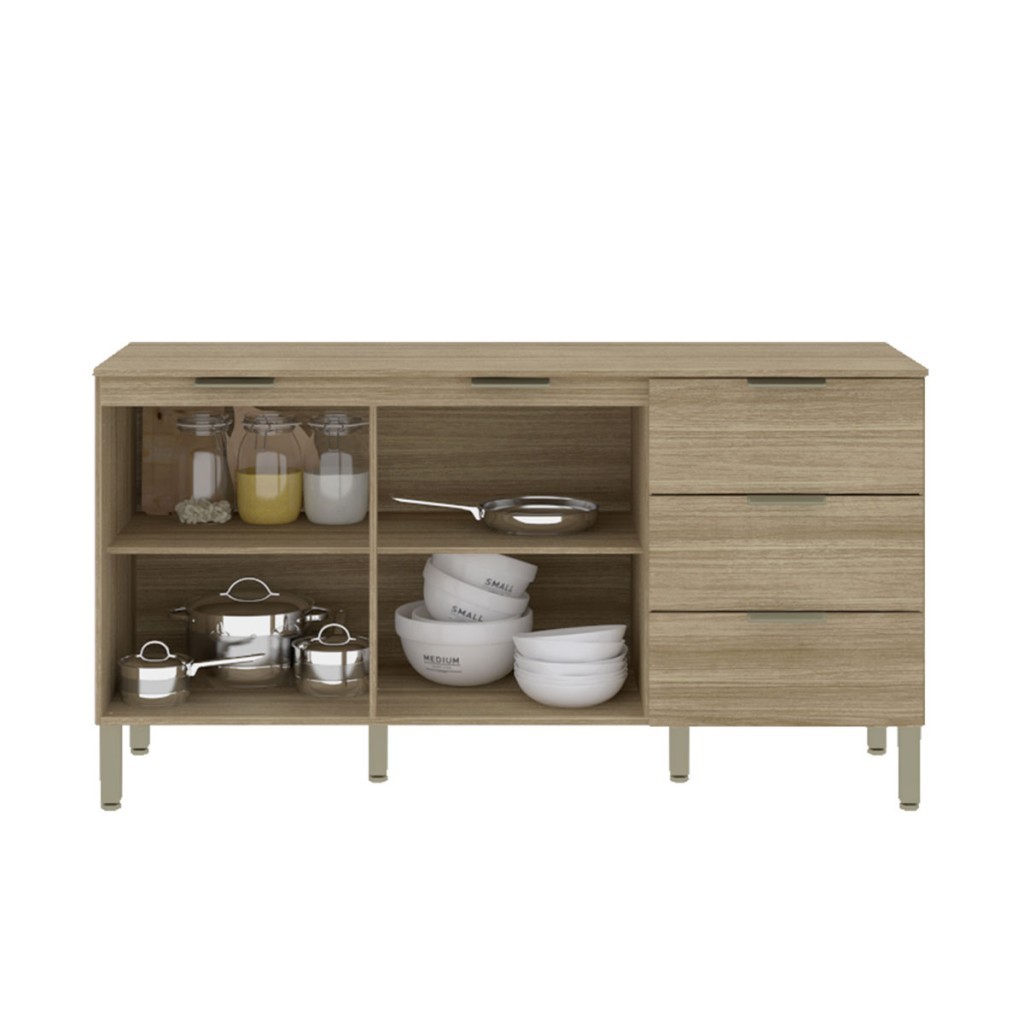 Balcão de Cozinha para Pia 160 Cm Glam 2 Portas 3 Gavetas Freijó - Kits Paraná