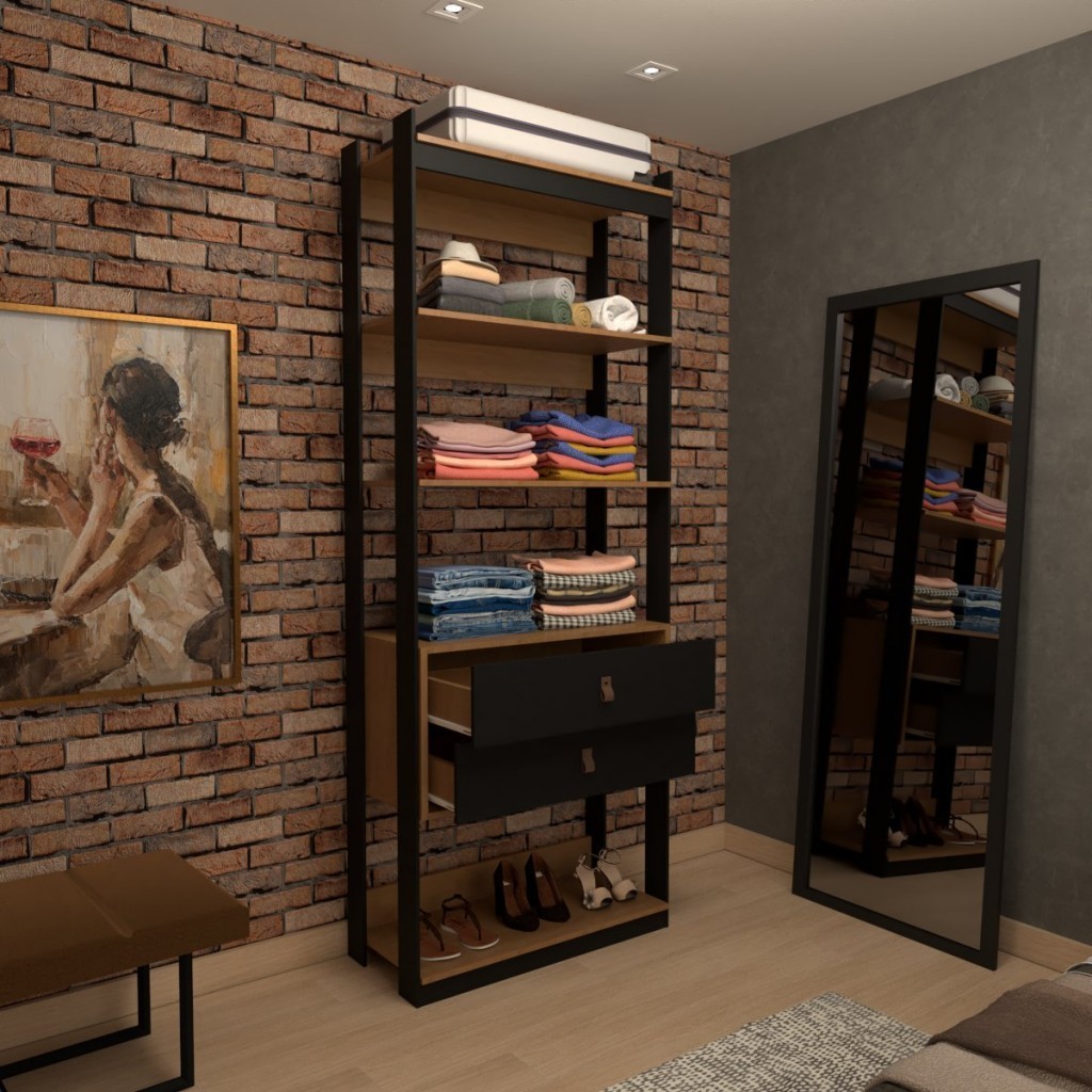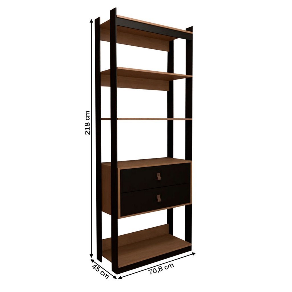 Closet Industrial Marseille 2 Gavetas 2 Prateleiras Black/Brise - Panorama Móveis