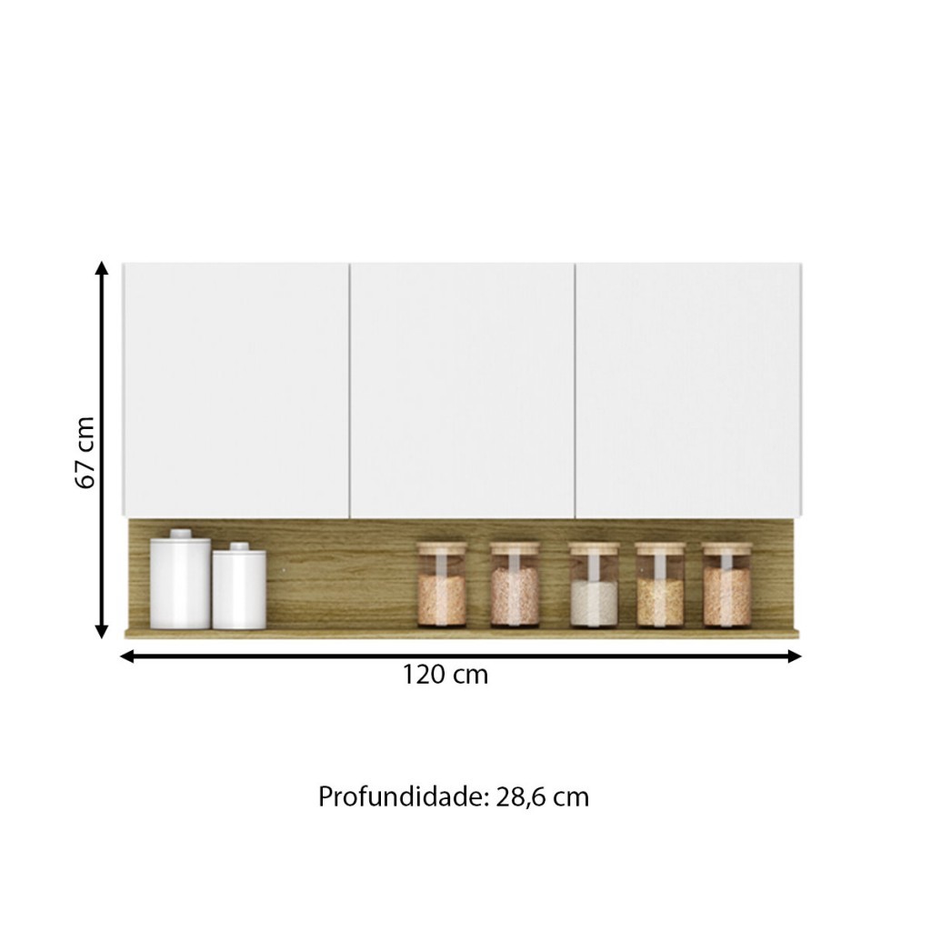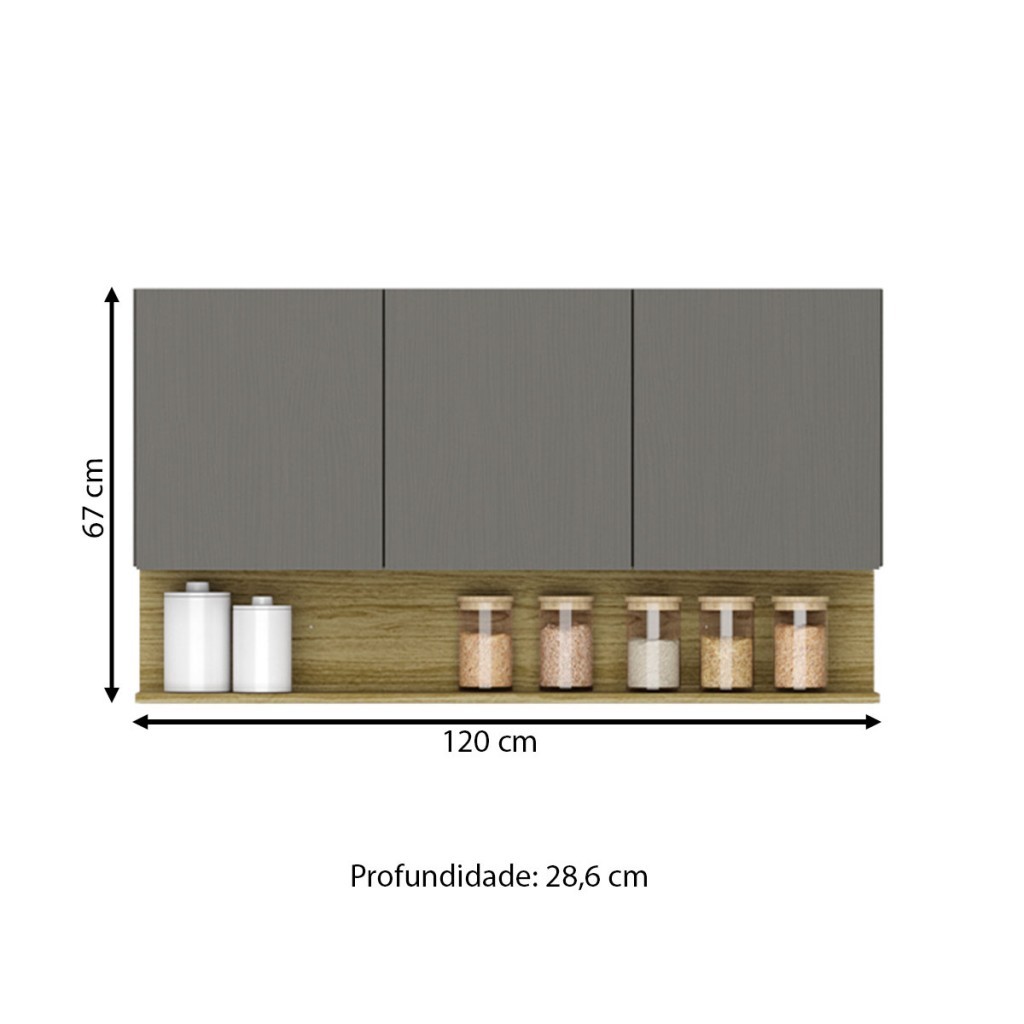 Armário Aéreo Cozinha 120 Cm Silver 3 Portas - Pnr Móveis