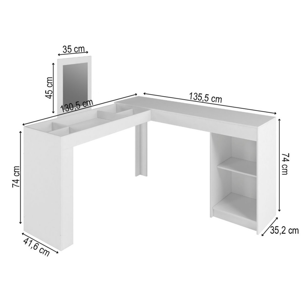 Penteadeira Star 1 Prateleira com Espelho Branco Bpe - Brv