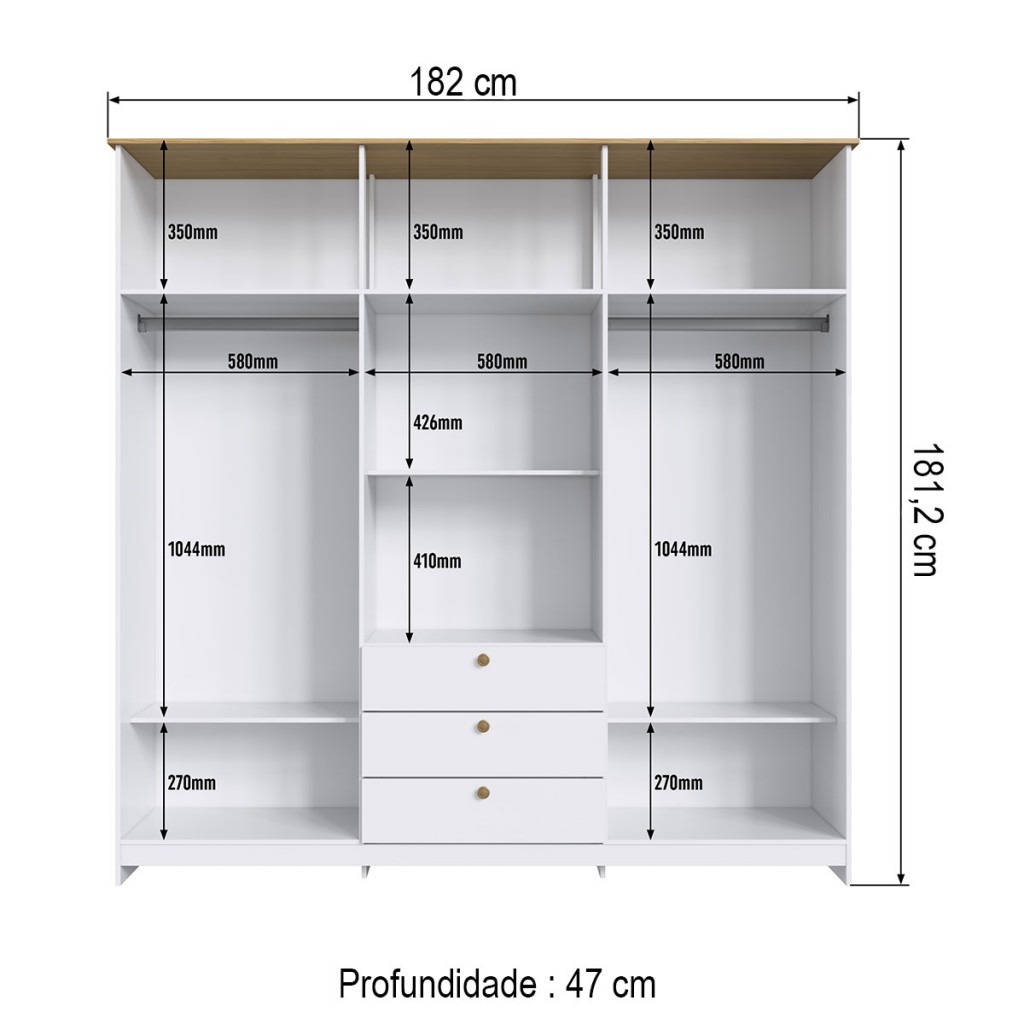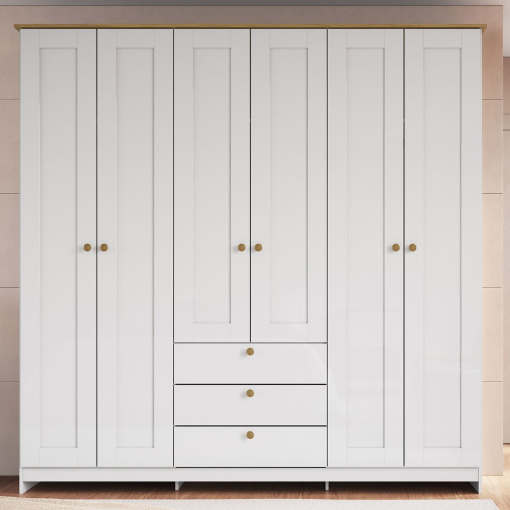Guarda-Roupa Casal Americano 6 Portas 3 Gavetas Branco/Ipê - Decibal