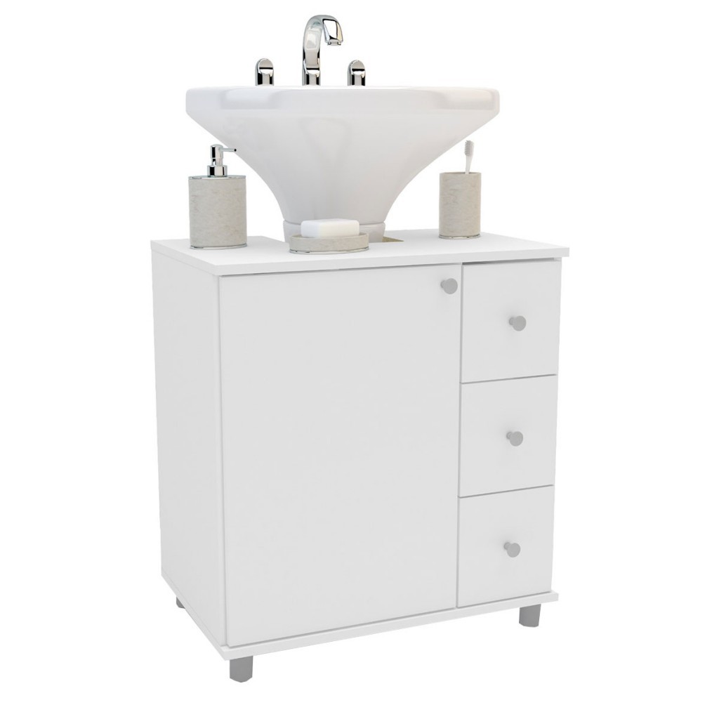 Armário de Banheiro 1 Porta 3 Gavetas 3386 Branco Bp - Politorno