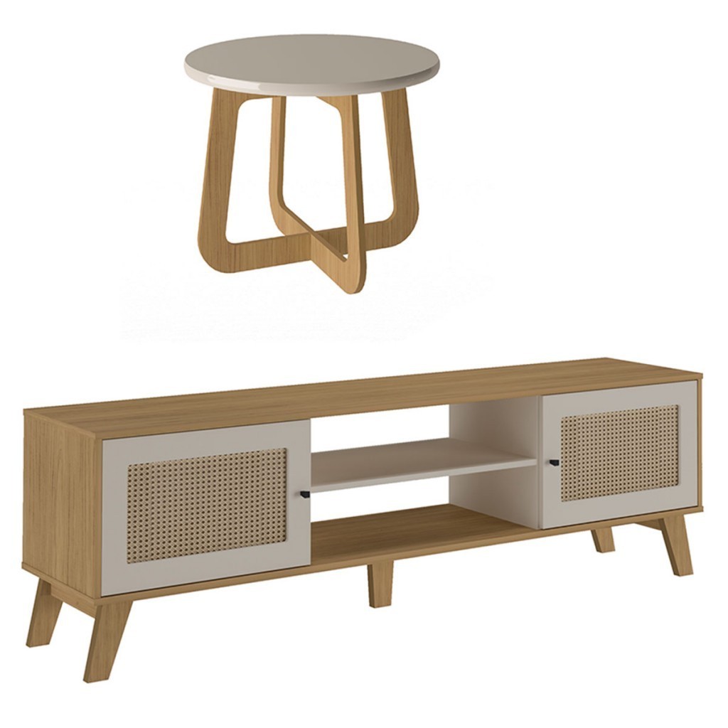 Sala de Estar Completa para TV até 75 Polegadas Charlotte 2 Portas Carvalho/Off White - Artely Móveis