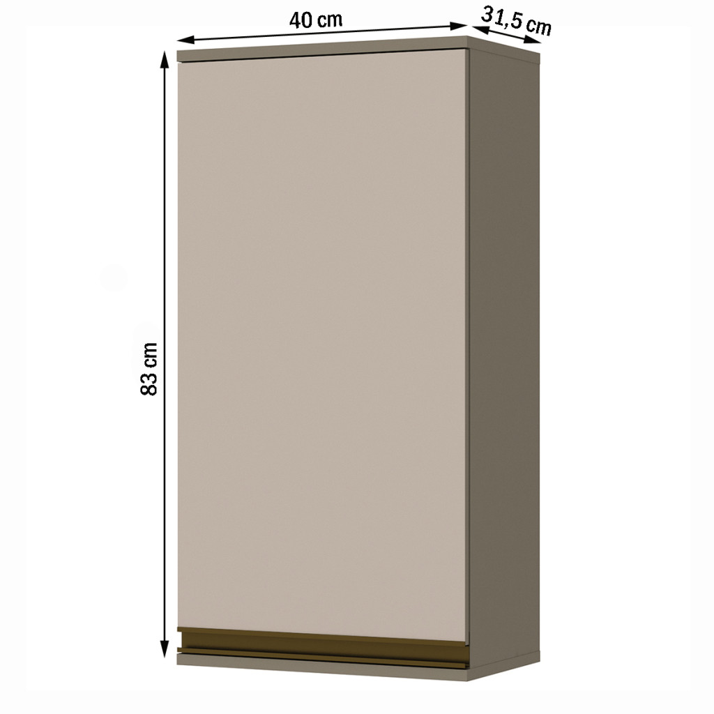 Armário Aéreo Cozinha Connect 1 Porta 100% Mdf Duna/Cristal C81 - Henn