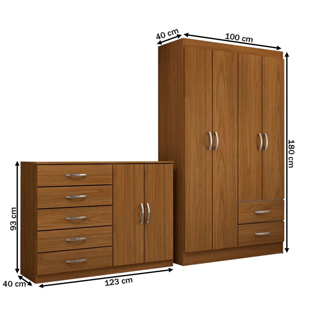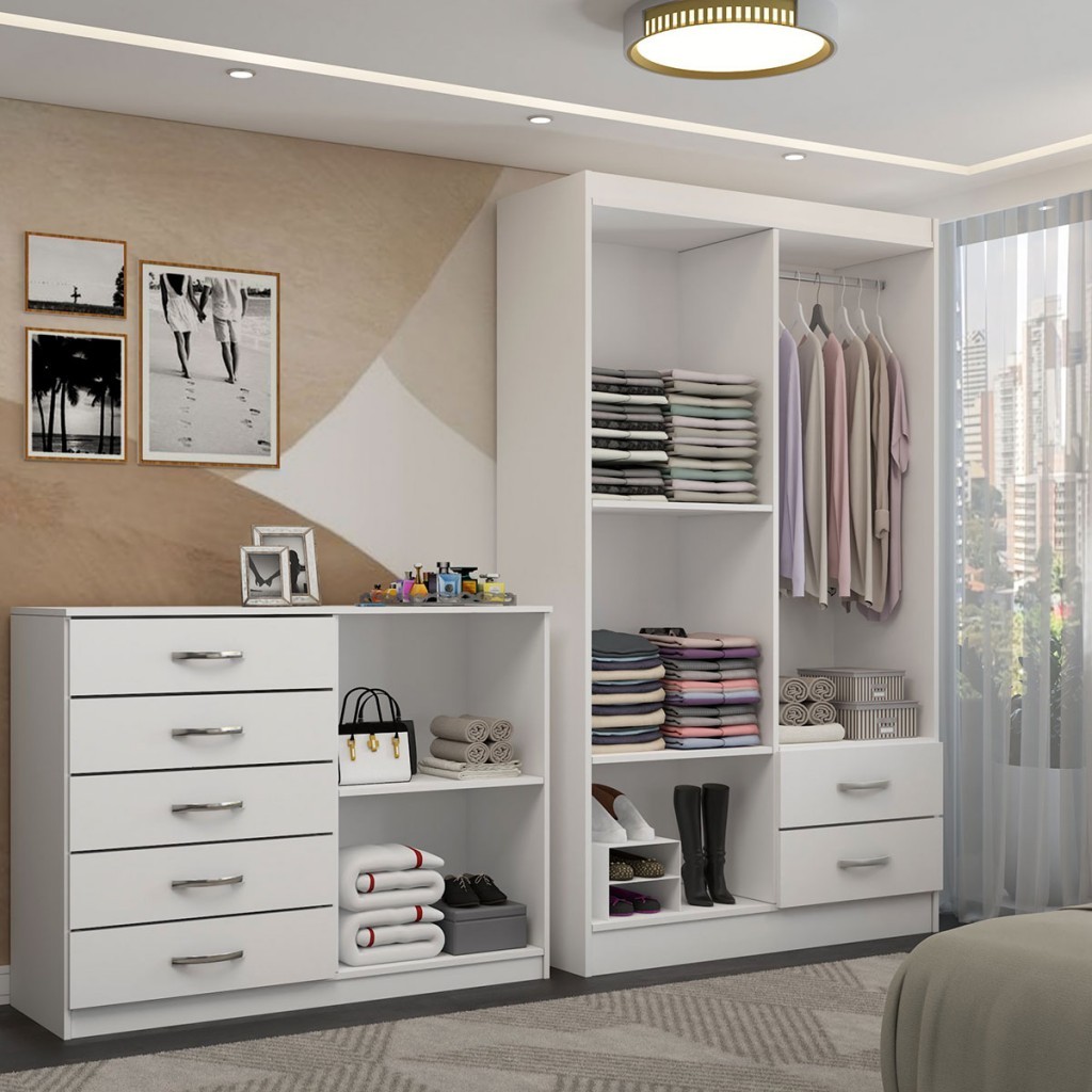 Guarda-Roupa Bella 4 Portas 2 Gavetas com Cômoda 2 Portas 5 Gavetas