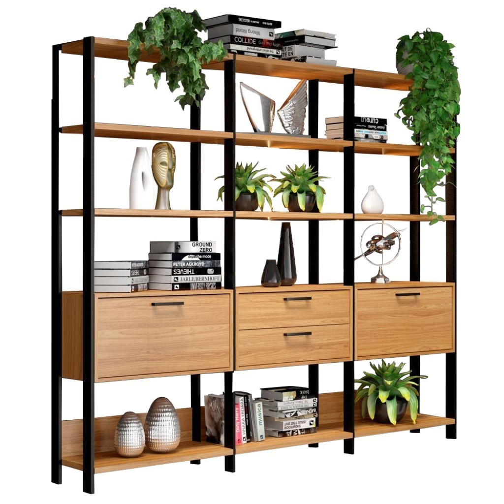 Estante para Livros Home Office 100% Mdf 2 Portas 2 Gavetas Freijó/Preto - Panorama Móveis