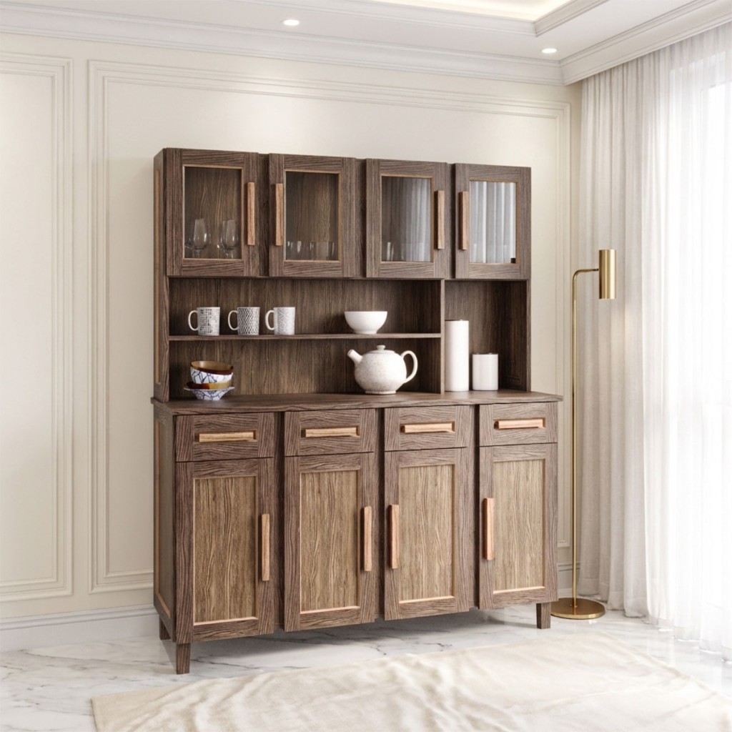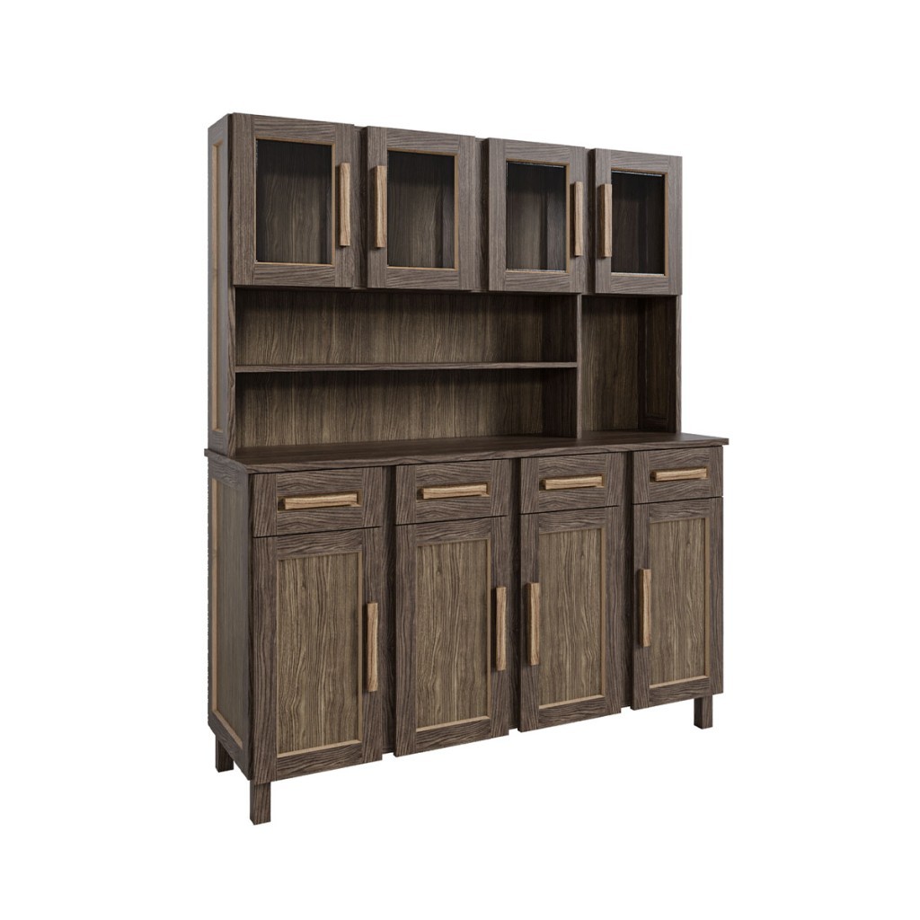 Armário de Cozinha Maranhão 8 Portas 4 Gavetas com Vidro Imbuia Natural - Rodmóveis