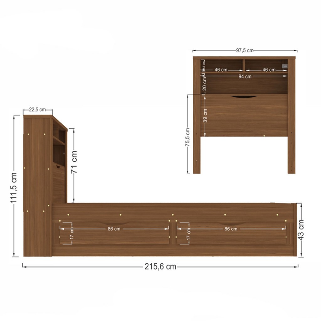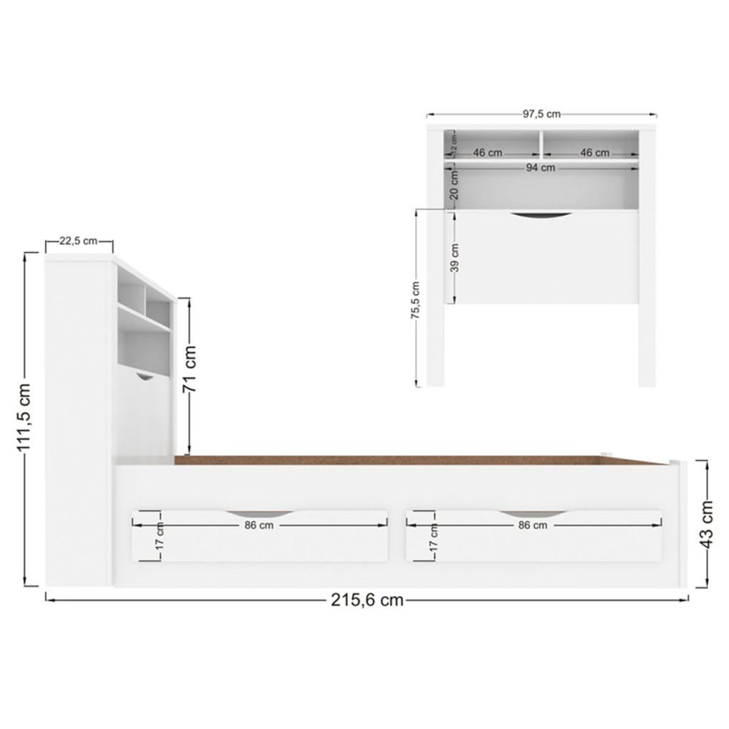 Cama Solteiro Omaha 1 Porta 2 Gavetas com Tomada - Pnr Móveis