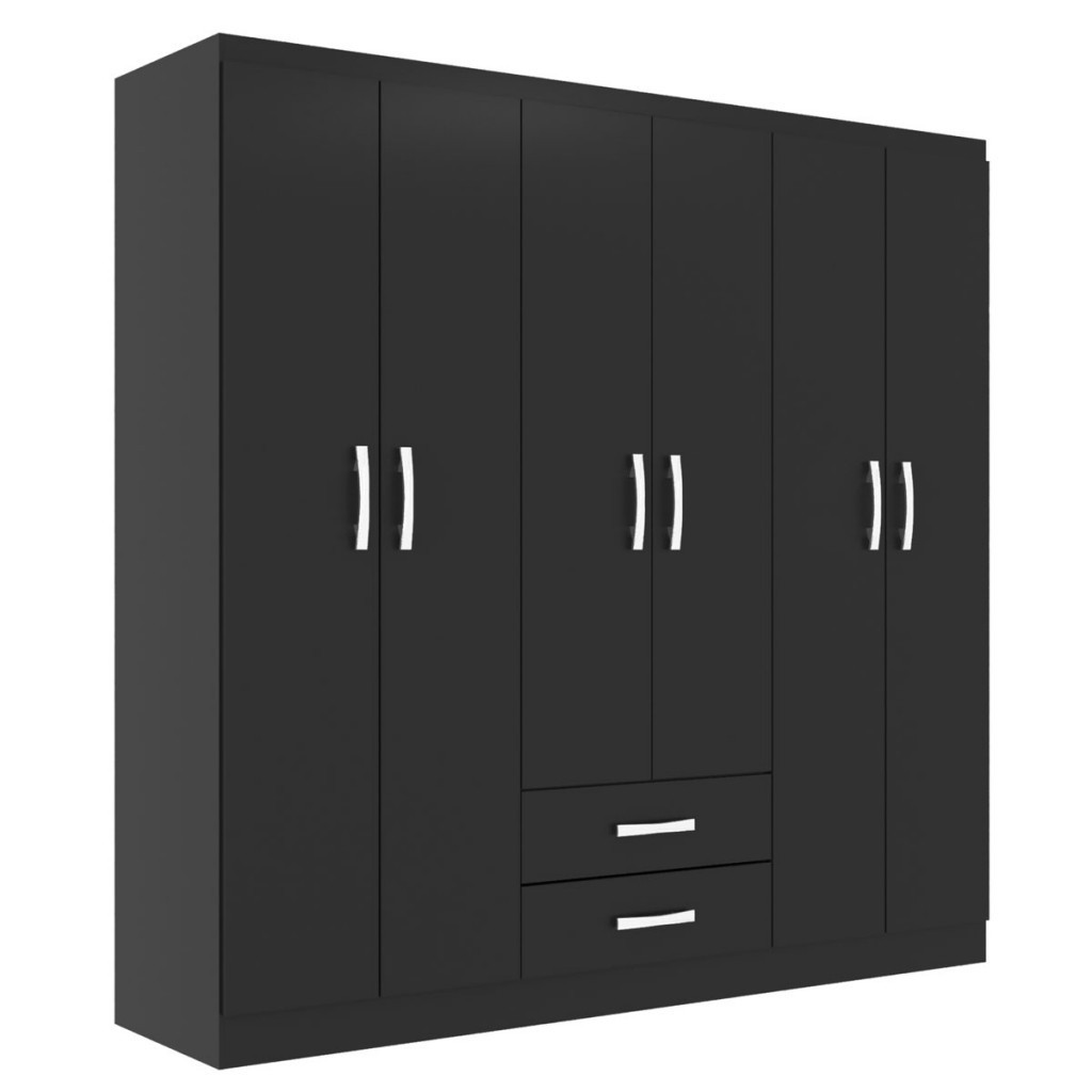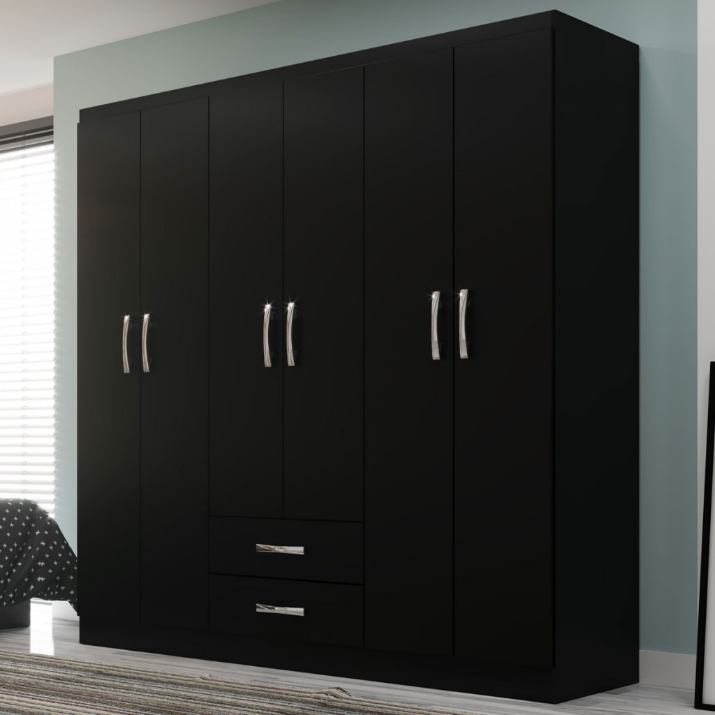 Guarda-Roupa Casal Atalaia 6 Portas 2 Gavetas Preto - Evidencia Móveis