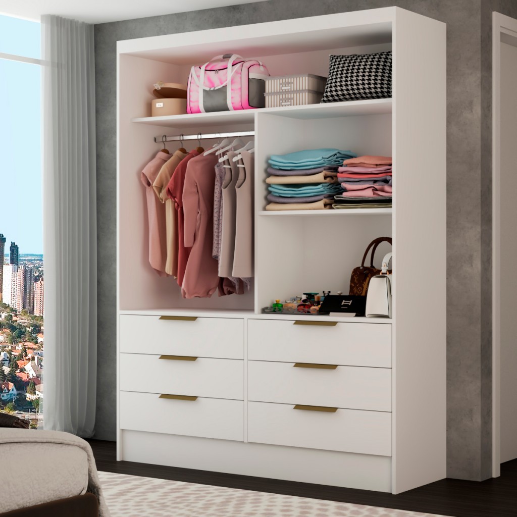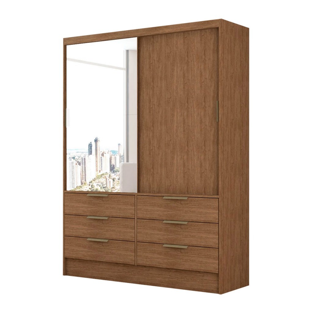 Guarda-Roupa Solteiro Taylor 2 Portas de Correr 6 Gavetas com Espelho